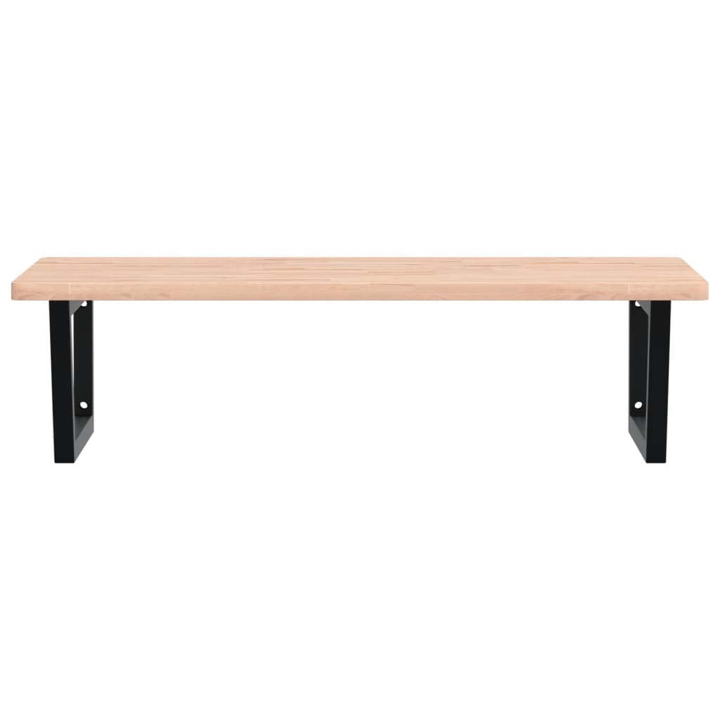 Die Waschtischplatte wird sicher an der Wand befestigt und bietet eine elegante und platzsparende Lösung für dein Badezimmer. Robust und langlebig: Dieses Waschbeckenregal besteht aus einem Stahlgestell und einer Oberplatte aus massivem Buchenholz, was es robust, stabil und langlebig macht. Platzsparend: Die schwebende Waschtischplatte bietet reichlich Platz für das Waschbecken, Seifen, Cremes sowie andere Kleinigkeiten. Dank der Trapezform kannst du Handtücher oder andere Dinge platzsparend an der Halterung aufhängen. Einfache Verwendung: Die Holzplatte ist nicht vorgebohrt, so dass dein Waschbecken je nach Bedarf links, rechts oder mittig installiert werden kann. Dank der vorgebohrten Löcher in der Halterung kann diese einfach mit der Tischplatte montiert und an der Wand befestigt werden. Vielseitige Anwendungsmöglichkeiten: Dank ihres modernen Designs fügt sie sich in verschiedene Arten von Bädern ein. Gut zu wissen:Die Schrauben sind nicht im Lieferumfang enthalten. Du kannst die Schrauben auf der Grundlage der unten aufgeführten Informationen separat erwerben. Wandbefestigung: 2 Stück M8-Dehnschrauben pro Halterung Holzplatte: 2 Stück M5x18-Schrauben (T=2) oder 2 Stück M5x20-Schrauben (T=2,5/4 cm) pro Halterung