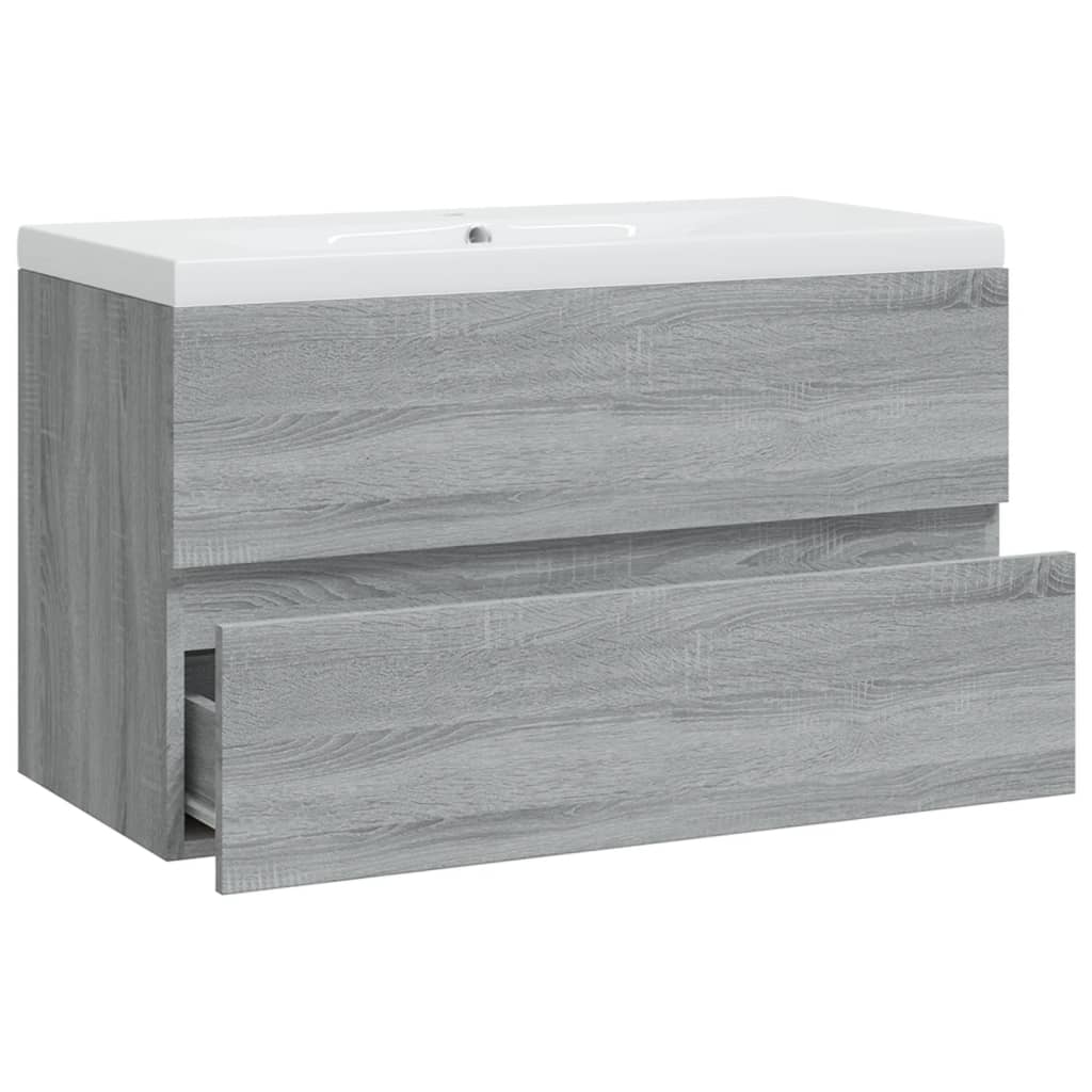 Waschbeckenschrank mit Einbaubecken Grau Sonoma Holzwerkstoff
