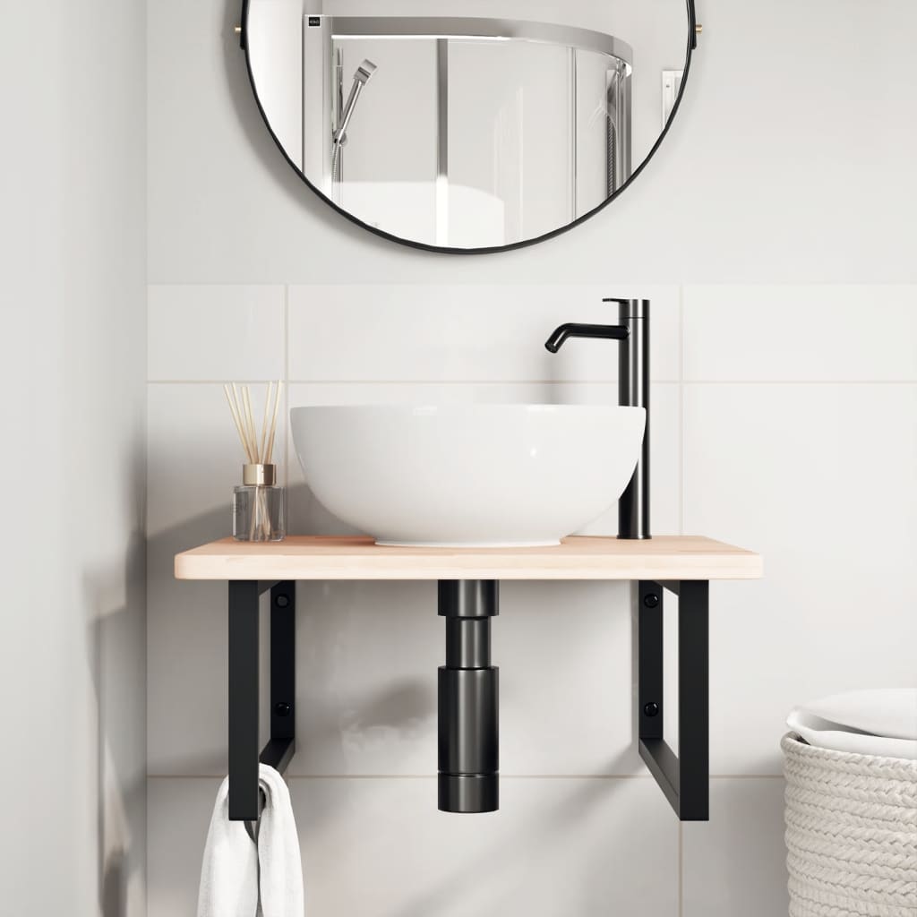 Waschtischplatte mit Halterung Stahl und Massivholz Eiche