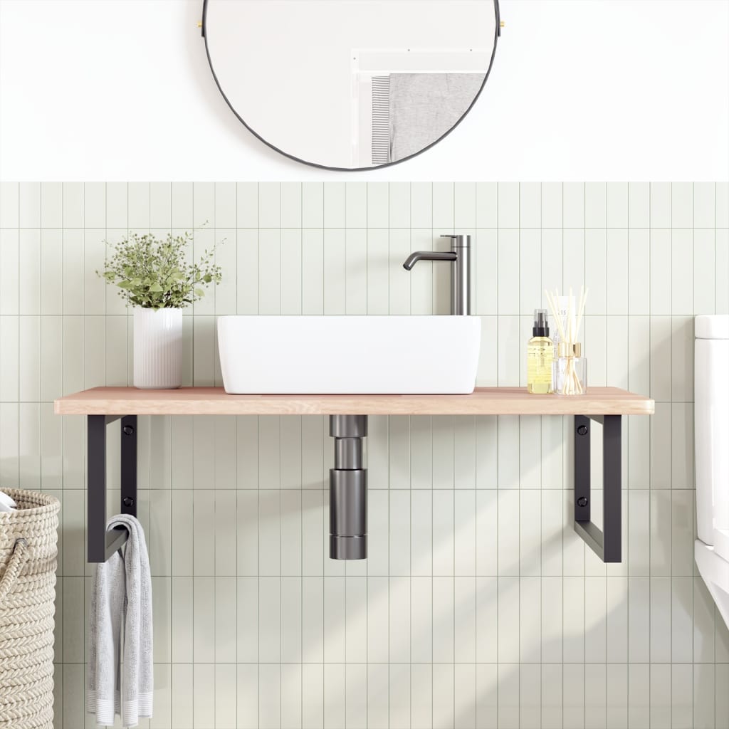 Das Regal lässt sich sicher an der Wand befestigen und bietet eine elegante und platzsparende Lösung für dein Badezimmer. Robust und langlebig: Diese Waschtisch-Platte hat Stahlhalterungen und eine Eichenholz-Platte, wodurch sie robust, stabil und langlebig ist. Platzsparend: Das Schweberegal bietet reichlich Platz für Cremes und verschiedene Kleinigkeiten. Dank der rechteckigen Form der Halterungen kannst du auch Handtücher oder andere Sachen darauf platzsparend aufhängen. Einfache Verwendung: Die Holzplatte ist nicht vorgebohrt, sodass dein Waschbecken je nach Bedarf links, rechts oder in der Mitte angebracht werden kann. Dank der vorgebohrten Löcher in der Halterung lässt sich die Ablage am Waschtisch oder an der Wand mühelos befestigen. Vielseitig einsetzbar: Dank ihres modernen Designs schafft die Ablage zusätzlichen Stauraum und fügt sich harmonisch in die unterschiedlichsten Einrichtungen ein. Gut zu wissen:Die Schrauben sind nicht im Lieferumfang enthalten. Du kannst die Schrauben anhand von den folgenden Informationen separat erwerben. Wandbefestigung: 2 x M8-Dehnschraube pro Halterung Holzplatte: 2 x M5x18-Schraube (T=2) oder 2 x M5x20-Schraube (T=2,5/4 cm) pro Halterung