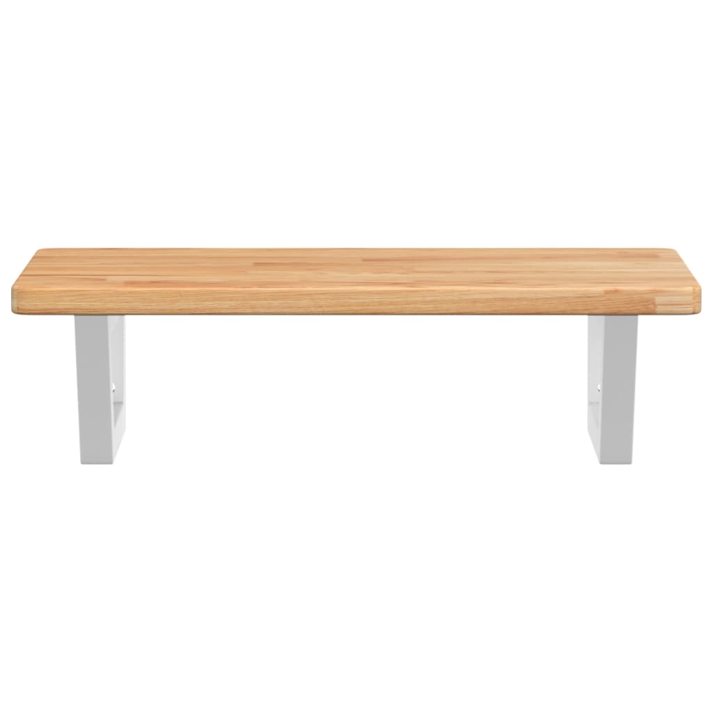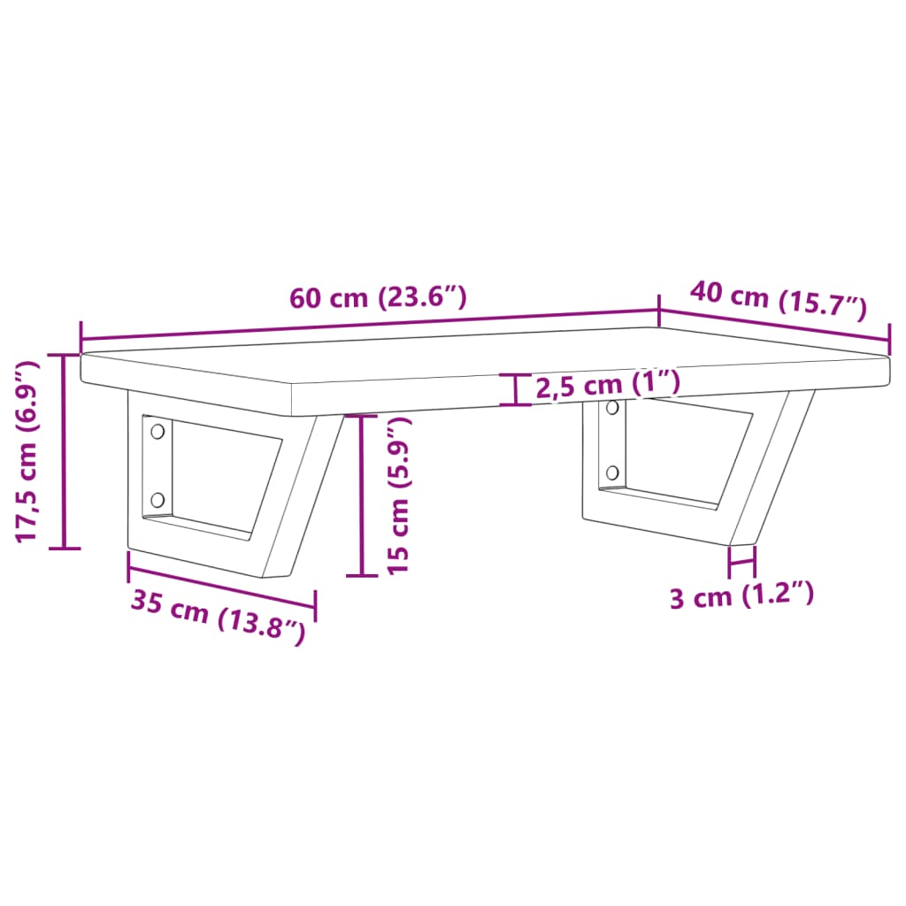 Die Waschtischplatte wird sicher an der Wand befestigt und bietet eine elegante und platzsparende Lösung für dein Badezimmer. Robust und langlebig: Diese Waschtisch-Platte hat Stahlhalterungen und eine Eichenholz-Platte, wodurch sie robust, stabil und langlebig ist. Platzsparend: Die schwebende Waschtischplatte bietet reichlich Platz für das Waschbecken, Seifen, Cremes sowie andere Kleinigkeiten. Dank der Trapezform kannst du Handtücher oder andere Dinge platzsparend an der Halterung aufhängen. Einfache Verwendung: Die Holzplatte ist nicht vorgebohrt, so dass dein Waschbecken je nach Bedarf links, rechts oder mittig installiert werden kann. Dank der vorgebohrten Löcher in der Halterung kann diese einfach mit der Tischplatte montiert und an der Wand befestigt werden. Vielseitige Anwendungsmöglichkeiten: Dank ihres modernen Designs fügt sie sich in verschiedene Arten von Bädern ein. Gut zu wissen:Die Schrauben sind nicht im Lieferumfang enthalten. Du kannst die Schrauben auf der Grundlage der unten aufgeführten Informationen separat erwerben. Wandbefestigung: 2 Stück M8-Dehnschrauben pro Halterung Holzplatte: 2 Stück M5x18-Schrauben (T=2) oder 2 Stück M5x20-Schrauben (T=2,5/4 cm) pro Halterung