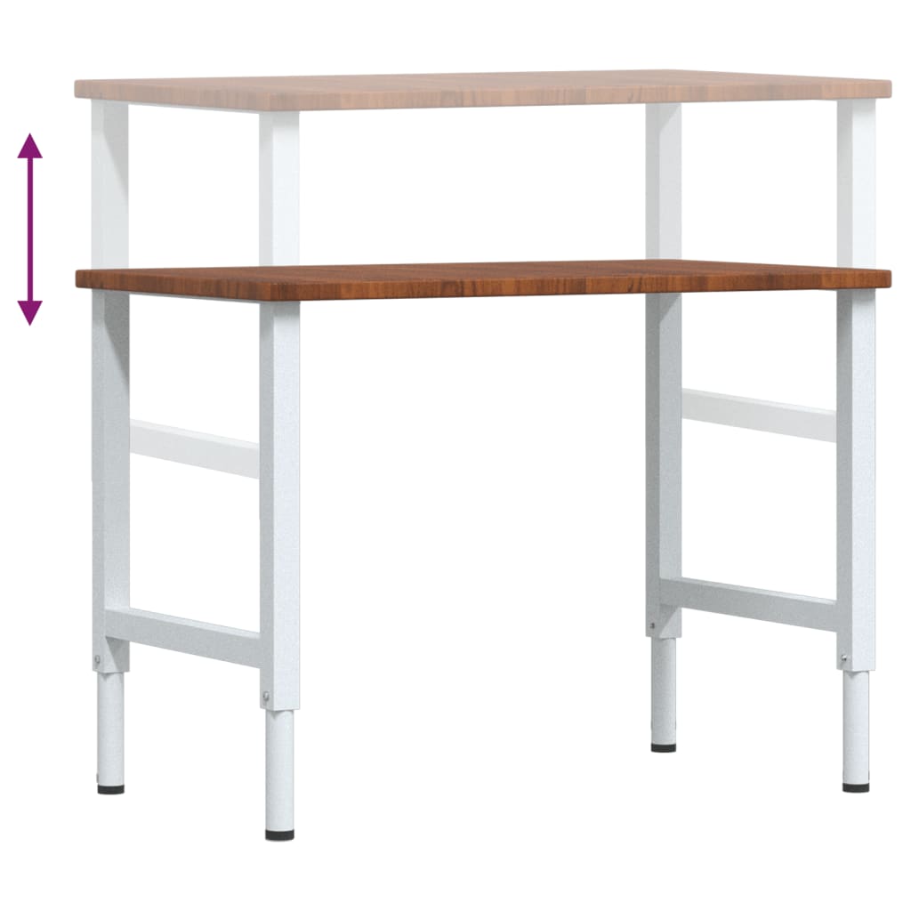 Die Werkbank ist ein großartiger Helfer, wenn du Reparaturarbeiten erledigen oder deine Heimwerker-Träume erfüllen möchtest! Robustes und langlebiges Material: Massives Eichenholz ist für seine Festigkeit, Haltbarkeit und schöne Maserung bekannt, weshalb es sich hervorragend für haltbare Möbel eignet. Durch seine natürliche Beständigkeit gegen Insektenbefall und Schimmelbildung sehen Eichenmöbel selbst nach jahrelangem Gebrauch brandneu aus.Stabiles und haltbares Gestell: Aus pulverbeschichtetem Metall gefertigt, ist das Gestell robust, stabil, langlebig, korrosions- und witterungsbeständig und gewährleistet dadurch eine lange Lebensdauer.Großer Arbeitsbereich: Der Arbeitstisch verfügt über eine geräumige Arbeitsplatte, die Platz für Bohrer, Kabeltrommel und weiteres Werkzeugzubehör bietet.Vielseitig einsetzbar: Mit ihrem schlichten und klaren Design lässt sich die Werkbank je nach Bedarf auch als Arbeitstisch verwenden. Sie ist daher ein praktisches und bequemes Möbelstück.Höhenverstellbare Beine: Die Beine lassen sich in der Höhe verstellen, um die Werkbank stets an deine Bedürfnisse anzupassen. Gut zu wissen:Jedes Stück ist ein Unikat, das in Farbe und Maserung variiert. Die Lieferung erfolgt in zufälliger Reihenfolge, wodurch die Exklusivität und Individualität deines Produkts gewährleistet wird. Achtung:Die Tischplatte ist mit keinen vorgebohrten Löchern versehen und Schrauben sind nicht im Lieferumfang enthalten. Daher müssen die Löcher gebohrt und die Schrauben vor dem Zusammenbau dieses Arbeitstisches erworben werden.