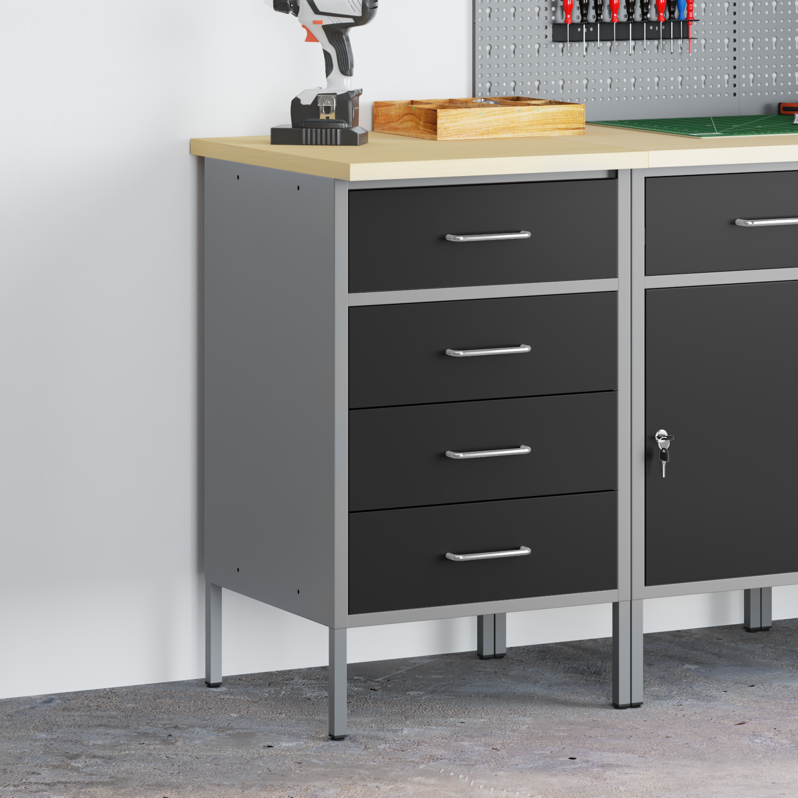 Wenn du nach einem stabilen und flexiblen Arbeitsplatz suchst, ist die industrielle Stahlarbeitsplatte genau das Richtige für dich. Ihr industrieller Stil bringt eine stylische Atmosphäre in jede Werkstatt oder Garage, die an Lofts und Lagerhäuser erinnert. Sie hat ein elegantes mattes Finish, ist robust genug für intensiven Gebrauch und hält deine Werkzeuge ordentlich sowie einsatzbereit! Materialien: Hergestellt aus hochwertigem pulverbeschichtetem Stahl, ist diese Werkbank langlebig und widerstandsfähig. Die strapazierfähige Oberfläche sorgt dafür, dass sie über die Jahre schick aussieht, was sie perfekt für jede Werkstatt oder Garage macht. Mit Holzelementen verbindet sie Stärke und Stil. Enthaltene Komponenten: Diese Werkbank kommt ohne Schubladen oder Regale, bietet dafür aber jede Menge Tischfläche für einen einfachen Zugriff auf Werkzeuge, was alles griffbereit hält und deinen Workflow verbessert. Funktionen / Anwendungen / Design: Die verstellbaren Füße machen sie ideal für unebene Böden und sorgen für Stabilität beim Arbeiten. Ihr industrielles Design feiert rohe urbane Stile und macht sie zur perfekten Wahl für Räume mit einem robusten Look. Das matte Finish sieht nicht nur gut aus, sondern ist auch funktional. Empfohlene Anwendungen: Ideal für jede Werkstatt oder Garage, ist diese Werkbank perfekt für verschiedene Projekte. Egal, ob du Profi oder Hobbybastler bist, sie bietet eine zuverlässige Fläche, um Dinge zu erledigen. Pflege & Wartung: Um sie in gutem Zustand zu halten, wische einfach die matte Oberfläche schnell mit einem feuchten Tuch ab, um ihr Aussehen und ihre Langlebigkeit zu erhalten. Vermeide aggressive Chemikalien, damit das Finish intakt bleibt, und du dich viele Jahre auf sie verlassen kannst.
