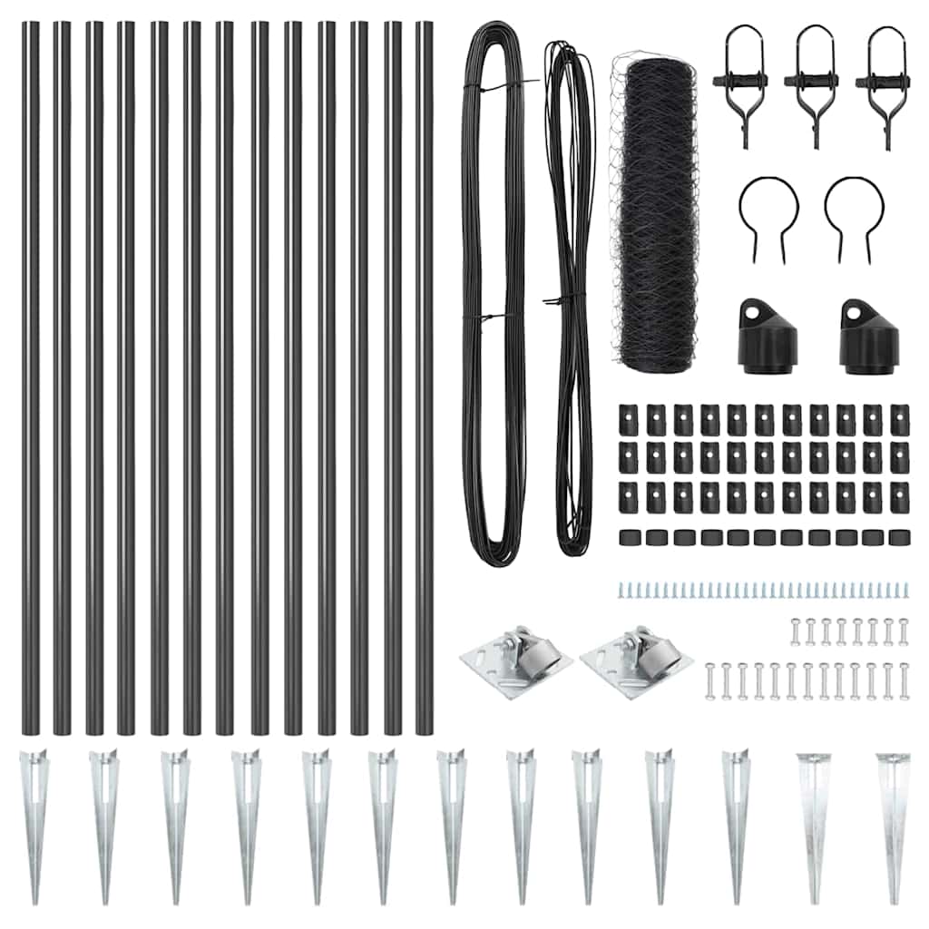 Zaun mit Pfosten Grau 0,4 x 25 m PVC-beschichteter Stahl