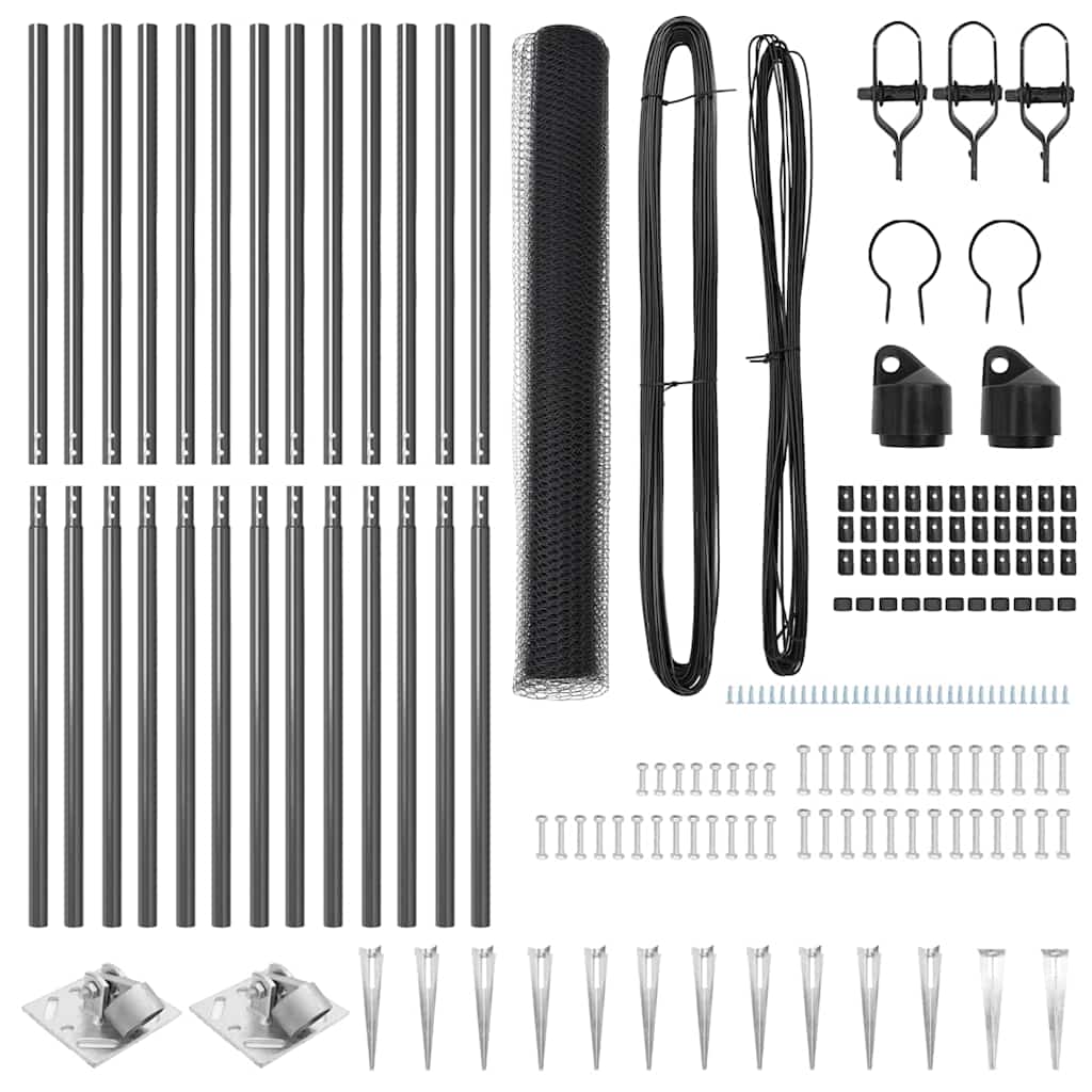 Zaun mit Pfosten Grau 1,2 x 25 m PVC-beschichteter Stahl