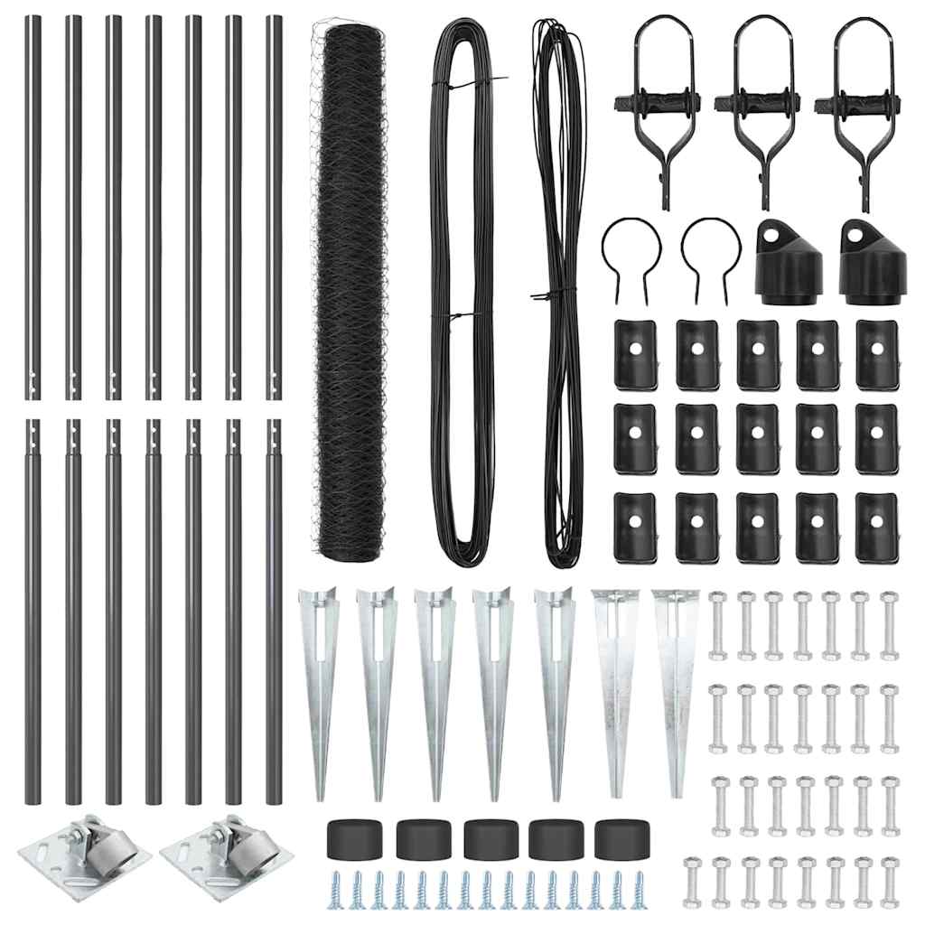 Zaun mit Pfosten Grau 1,4 x 10 m PVC-beschichteter Stahl
