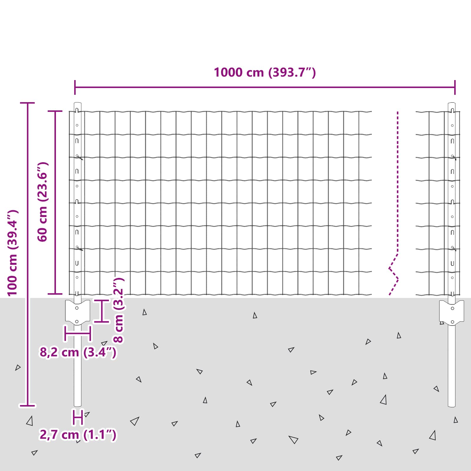 Zaun und Pfosten Silber 0,6 x 10 m Stahl