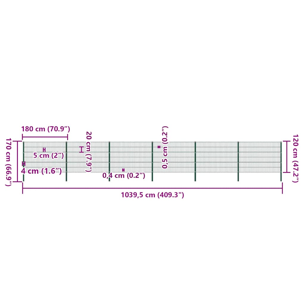 Zaunelement mit Pfosten Eisen 1040 x 120 cm Grün