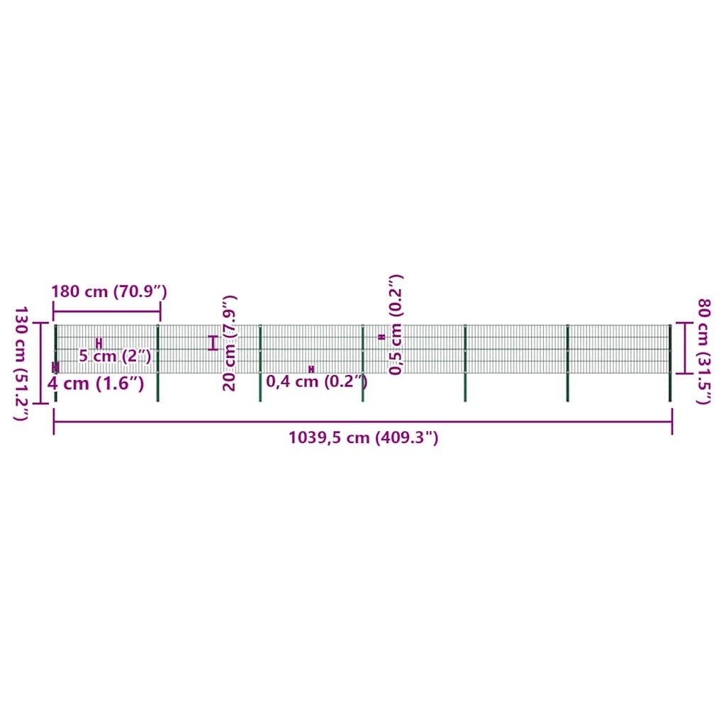 Zaunelement mit Pfosten Eisen 1040 x 80 cm Grün