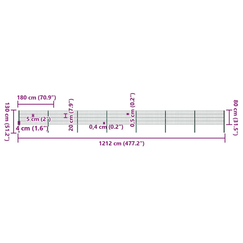 Zaunelement mit Pfosten Eisen 1212 x 80 cm Grün