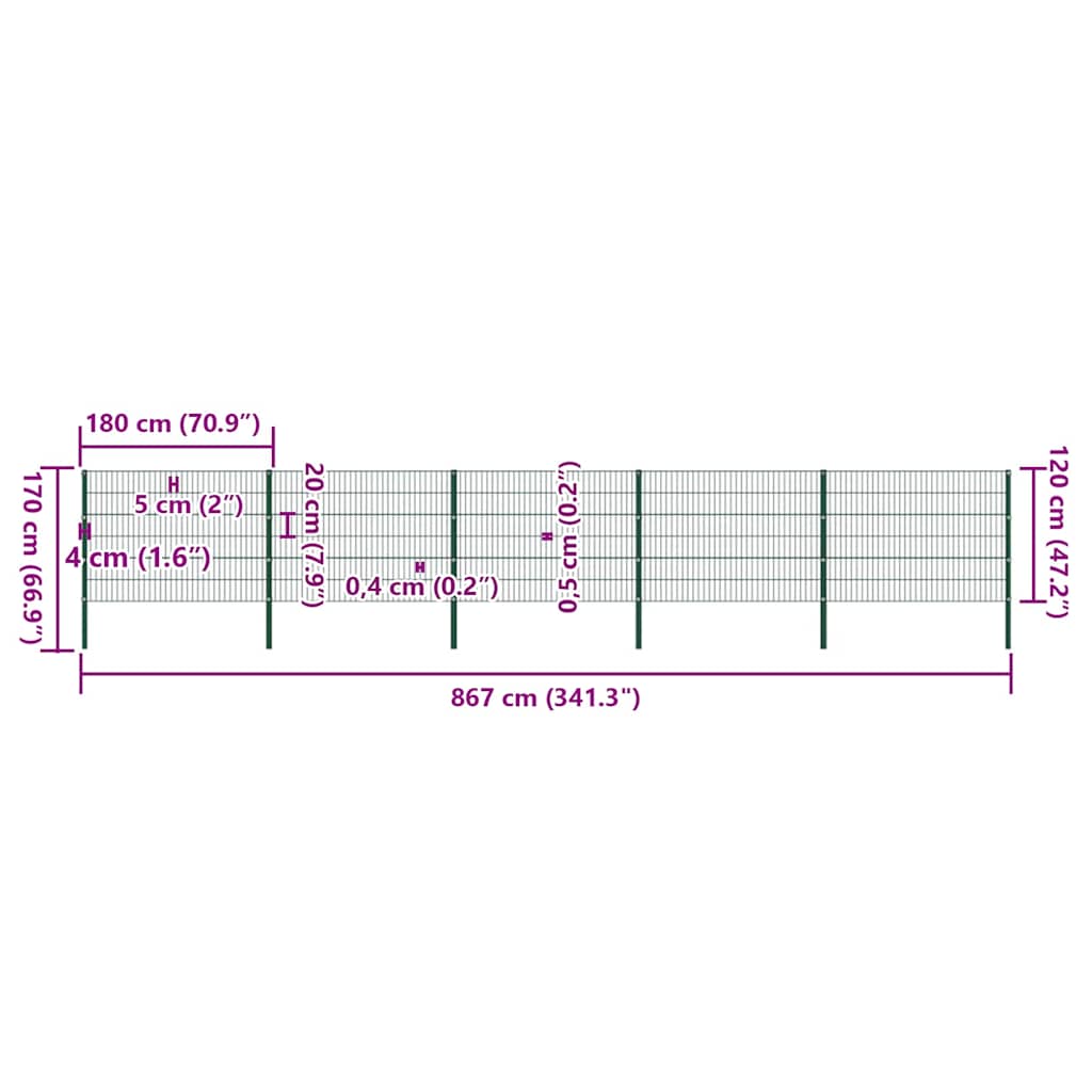 Zaunelement mit Pfosten Eisen 867 x 120 cm Grün