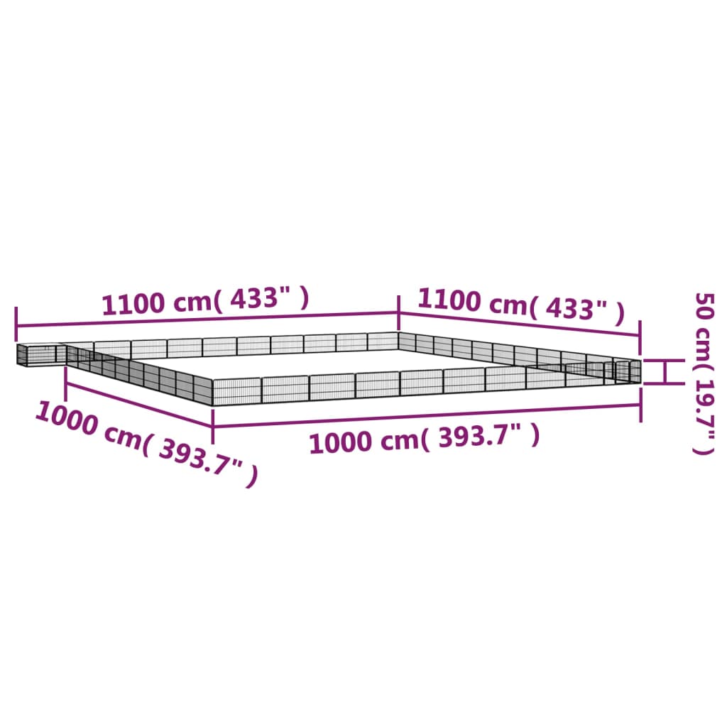 Dieser robusten Hundelaufstall bietet deinen Hunden ein perfektes Spielparadies! Er ist sowohl für professionelle Trainer als auch für Hundeliebhaber eine großartige Wahl. Robustes Material: Der Hundezwinger besteht aus pulverbeschichtetem Stahl, ist robust und langlebig und gewährleistet jahrelangen Gebrauch bei geringem Wartungsaufwand.Sichere Umgebung: Der Welpenauslauf bieten reichlich Platz für Bewegung, wobei die Gitterwände aus Stahl Unfug und unerwartete Unfälle verhindern und gleichzeitig eine gute Belüftung ermöglichen.Wasserfestes Material: Dieser Outdoor-Hundezwinger ist mit einem Dach aus Polyethylen versehen, das wasser- und UV-beständig ist. Daher hält er Feuchtigkeit und Regenwetter stand.Fest gesichertes Zubehör: Die mitgelieferten Stangen, mit denen die Paneele miteinander verbunden werden, können in den Boden gesteckt werden, was für große Stabilität sorgt.Sichere Tür: Der Hundezwinger ist mit einem Schloss ausgestattet, um deinen Kleintieren zusätzliche Sicherheit zu bieten. Hinweis:Jedes Produkt wird mit einer Montageanleitung in der Verpackung für eine einfache Montage geliefert.