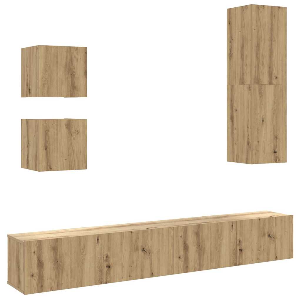 Dieses klassische TV-Schrank-Set wird mit seinem trendigen und dennoch praktischen Design zum Mittelpunkt deines Wohnzimmers. Starkes und langlebiges Material: Holzwerkstoff ist ein langlebiges und robustes Material mit einer glatten Oberfläche, das gegen Feuchtigkeit, Verformung und Rissbildung beständig ist, wodurch es eine zuverlässigen Wahl für die Herstellung von Möbeln ist.Reichlich Stauraum: Dieser TV-Schrank bietet reichlich Stauraum, um deine Zeitschriften, Bücher, DVDs und Multimedia-Geräte ordentlich und griffbereit aufzubewahren.Platzsparend: Der TV-Schrank kann an der Wand montiert werden, um zusätzlichen Stauraum zu schaffen. Auf diese Weise kannst du deine Bodenfläche maximieren und für Ordnung im Bad sorgen.Stabile und robuste Oberplatte: Die robuste Oberplatte bietet den idealen Platz für deinen Fernseher und Stereoanlagen oder einige Dekoartikel wie Vasen oder Topfpflanzen. Gut zu wissen:Schrauben und Dübel für die Montage an der Wand sind nicht enthalten. Passendes Montagezubehör muss separat gekauft werden. Wenn du dir bezüglich der Montage nicht sicher bist, wende dich bitte an einen Fachmann. Bitte lies und befolge jeden Schritt in der Anleitung.