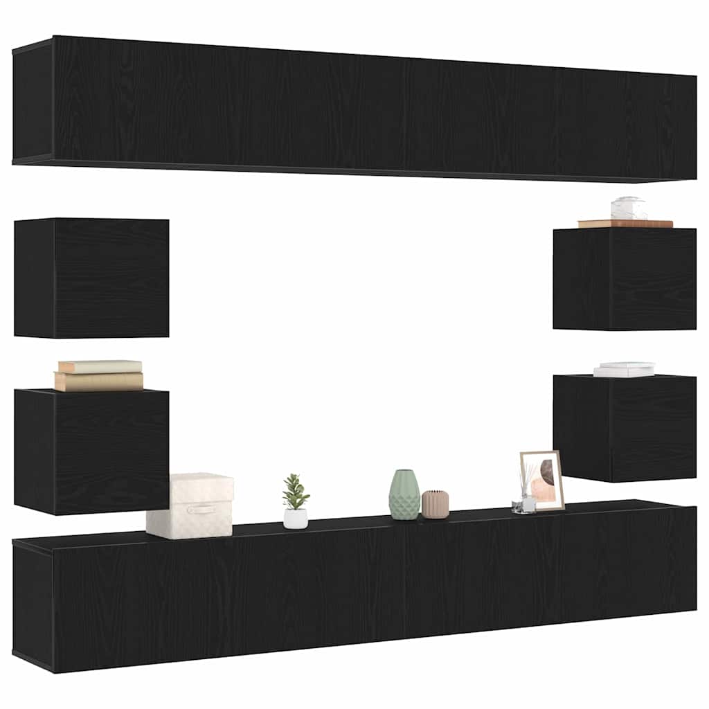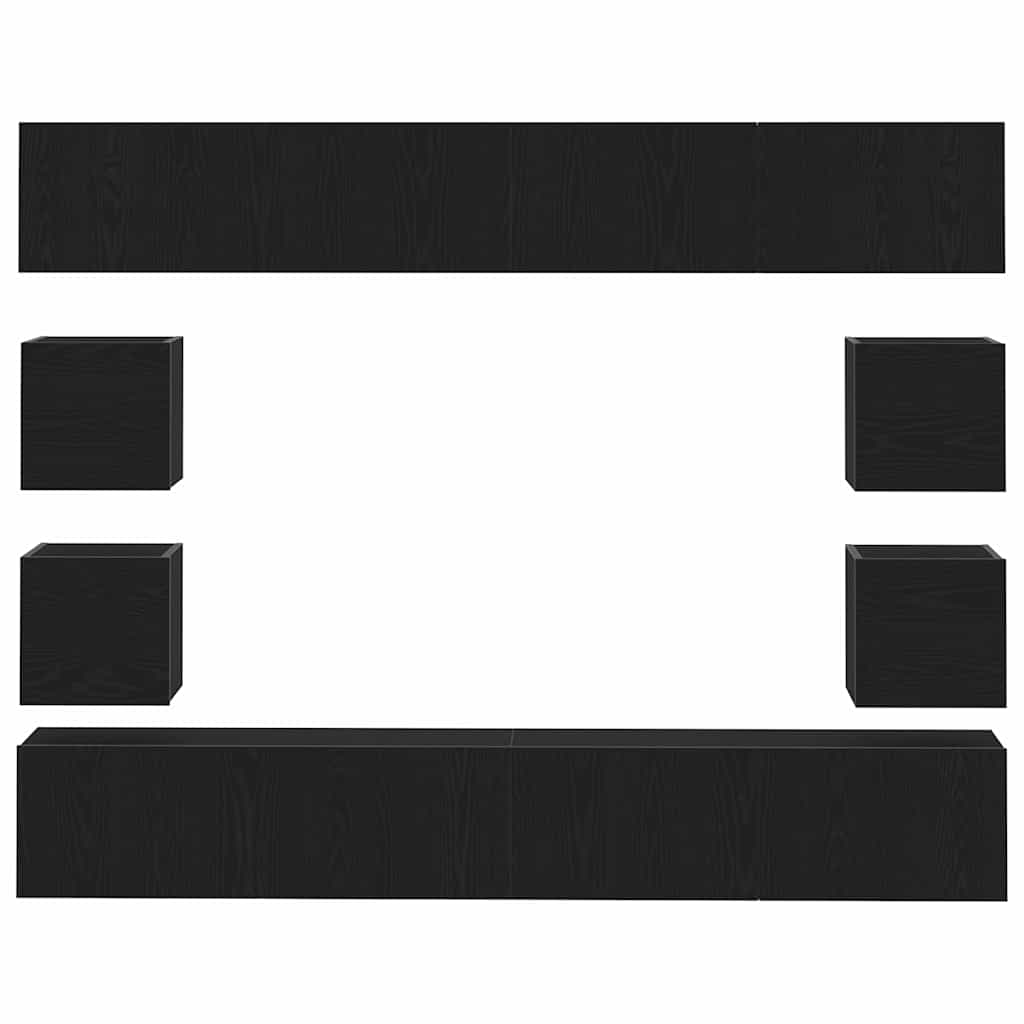 6-teiliges TV-Schrank Set -Wandmontiert, Schwarz-Eiche Holzwerkstoff