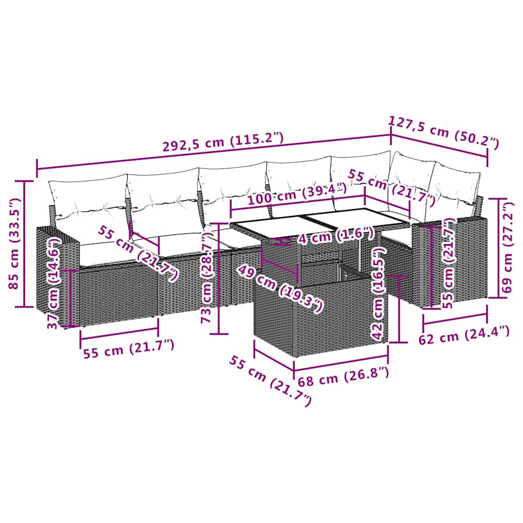 Diese Garten-Sofagarnitur ist die perfekte Ergänzung zu deinem Garten, deiner Terrasse oder deinem Innenhof. Sie bietet einen bequemen und einladenden Platz, um mit Familie und Freunden zu plaudern oder dich einfach nur zu entspannen und das Leben im Freien zu genießen. Langlebiges Material: PE-Rattan, auch als Poly Rattan bekannt, ist ein robustes, pflegeleichtes synthetisches Material, das die Optik von natürlichem Rattan aufweist. Es kennzeichnet sich durch ein geringes Eigengewicht und lässt sich einfach reinigen. Aufgrund seiner Haltbarkeit und Witterungsbeständigkeit wird es häufig bei der Herstellung von Gartenmöbeln verwendet.Verstellbare Tischplatte: Die Tischplatte lässt sich anheben, um den Gartentisch höher zu machen und ihn von einem Couchtisch in einen Esstisch zu verwandeln. Er eignet sich daher perfekt für Gäste oder Mahlzeiten im Freien.Bequemes Sitzerlebnis: Dieser Gartensessel mit dick gepolsterten Kissen bietet ein angenehmes Sitzgefühl.Abnehmbarer und waschbarer Bezug: Diese Sitzkissen verfügen über abnehmbare Bezüge für einfaches Waschen und Pflegen.Modulares Design: Dank des modularen Designs lassen sich die Gartenmöbel völlig flexibel und einfach umstellen, um deinen Außenbereich ganz individuell zu gestalten. Gut zu wissen:Wir empfehlen dir, deine Gartenmöbel mit einer wasserdichten Hülle zu schützen, um lange Zeit eine ansprechende Optik aufzuweisen.