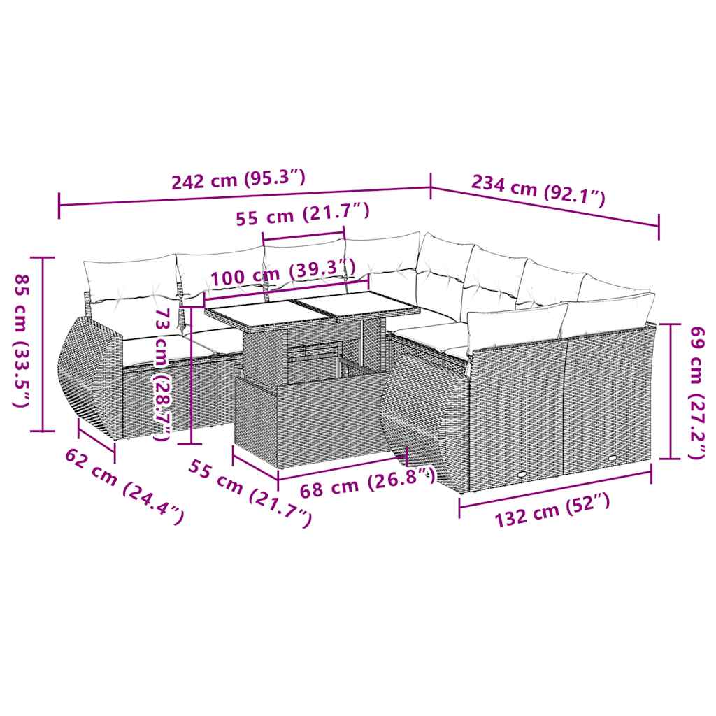 9-teiliges Gartensofa-Set mit Kissen, braun, Polyrattan