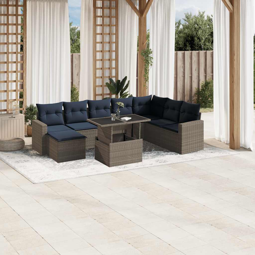 9-teiliges Gartensofa-Set mit Kissen, grau, Polyrattan