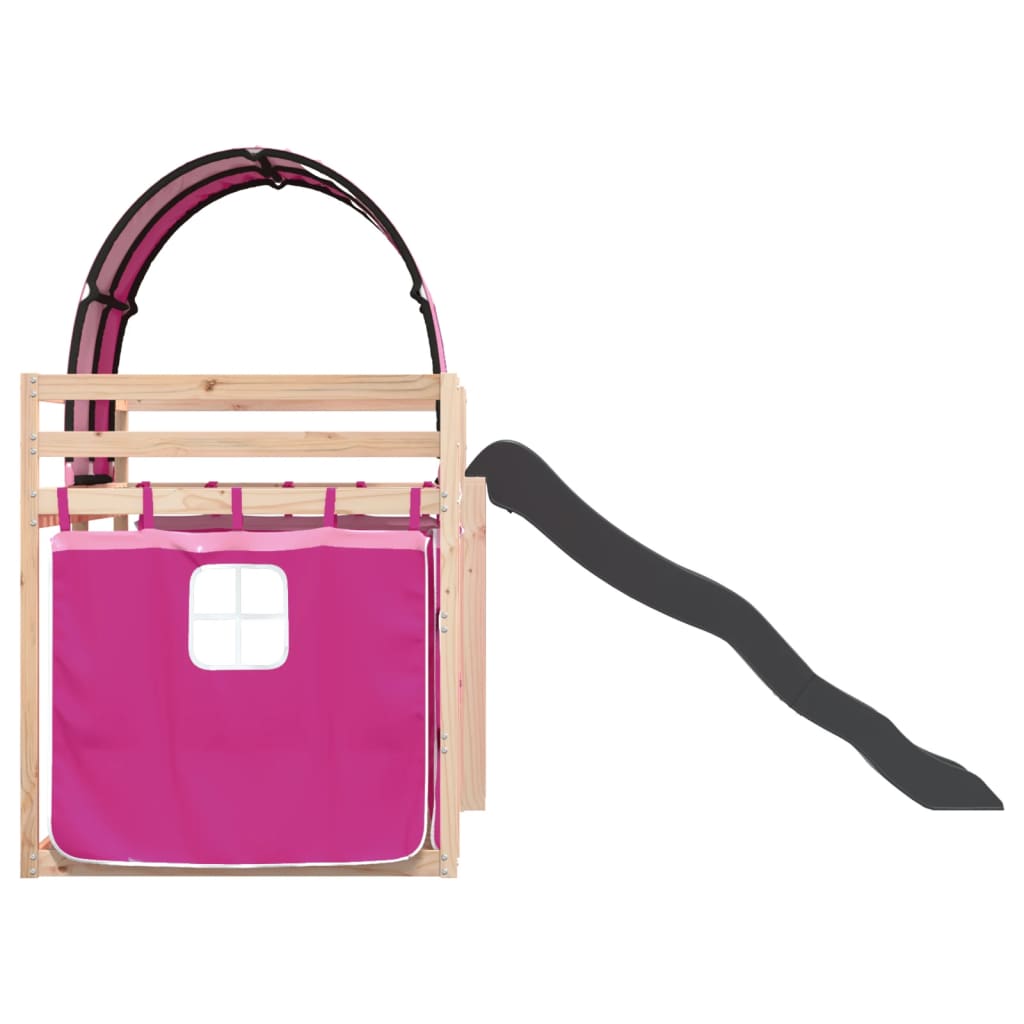 Etagenbett mit Rutsche und Gardinen Rosa 80x200 cm