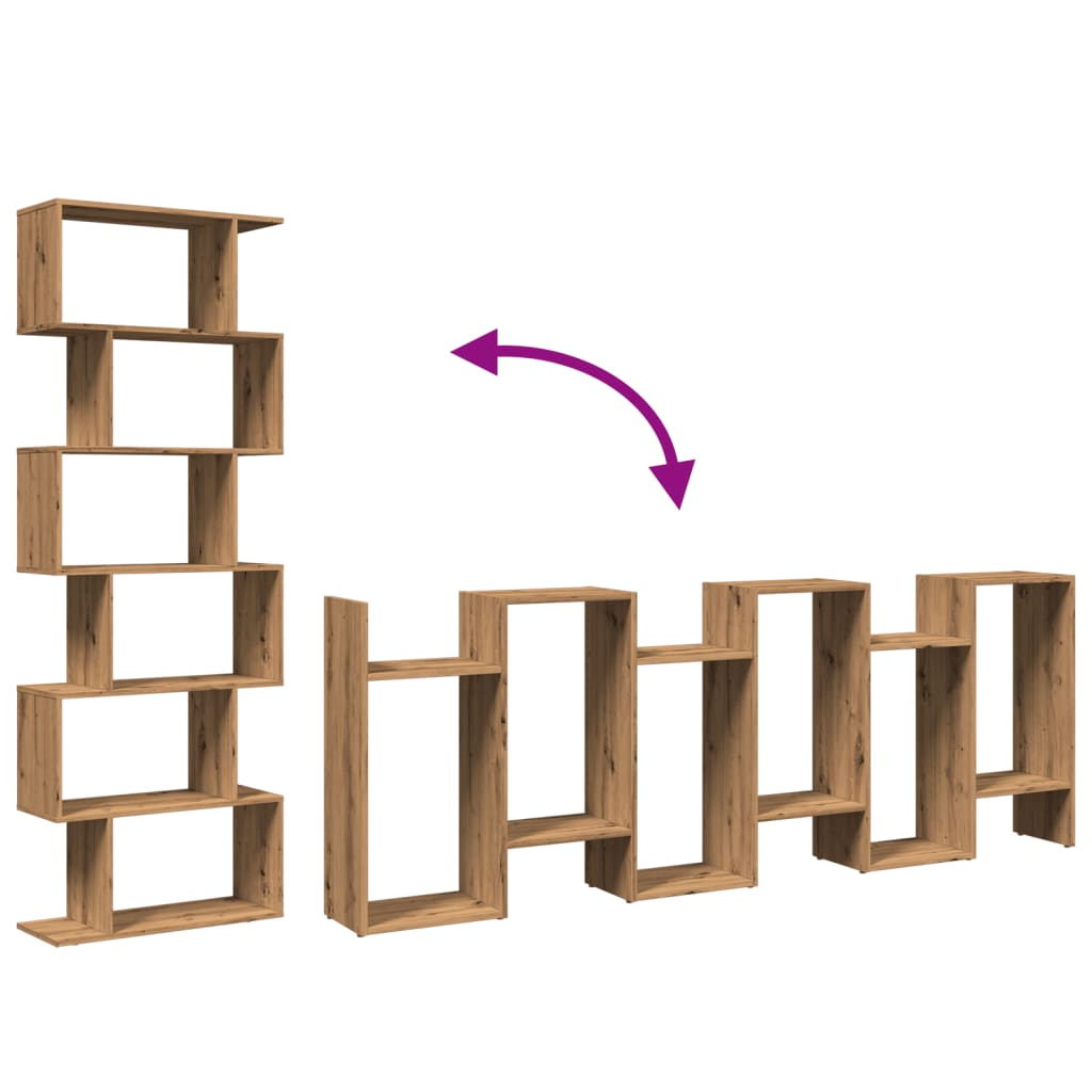 Das Raumteiler-Bücherregal im geometrischen Design bietet viel Stauraum und eignet sich perfekt, um deinen Wohnraum stilvoll und aufgeräumt zu halten! Starkes und langlebiges Material: Holzwerkstoff ist ein langlebiges und robustes Material mit einer glatten Oberfläche, das gegen Feuchtigkeit, Verformung und Rissbildung beständig ist; dadurch ist es eine zuverlässige Wahl für die Herstellung von Möbeln.Reichlich Stauraum: Das Bücherregal ist mit versetzten Fächern ausgestattet und bietet reichlich Platz für deine Bücher und Dekoartikel. Kleinere Gegenstände können auch auf den seitlichen Plattformen platziert werden, um den Raum optimal zu nutzen und gleichzeitig Ordnung zu halten.Flexible Aufstellungsmöglichkeiten: Das Raumtrenner-Regal kann sowohl in der Breite als auch in der Höhe auf den Boden gestellt werden und bietet so unterschiedliche Möglichkeiten der Raumgestaltung.Vielseitig einsetzbar: Das Regal kann auch als Raumteiler verwendet werden und passt problemlos zu jedem Einrichtungsstil. Es findet Platz im Wohnzimmer, um Dekoartikel zur Schau zu stellen, im Büro, um Bücher und Unterlagen zu verstauen, im Schlafzimmer, um Alltagssachen aufzubewahren, oder im Keller, um Haushaltssachen zu lagern.Pflegeleicht: Dank seiner glatten Oberfläche lässt sich das Bücherregal einfach mit einem feuchten Tuch reinigen und erfordert wenig Pflege. Achtung:Um ein Umkippen zu vermeiden, sollte dieses Produkt mit der mitgelieferten Wandhalterung gesichert werden. Gut zu wissen:Schrauben und Dübel für die Montage an der Wand sind nicht enthalten. Passendes Montagezubehör muss separat gekauft werden. Wenn du dir bezüglich der Montage nicht sicher bist, wende dich bitte an einen Fachmann. Bitte lies und befolge jeden Schritt in der Anleitung.