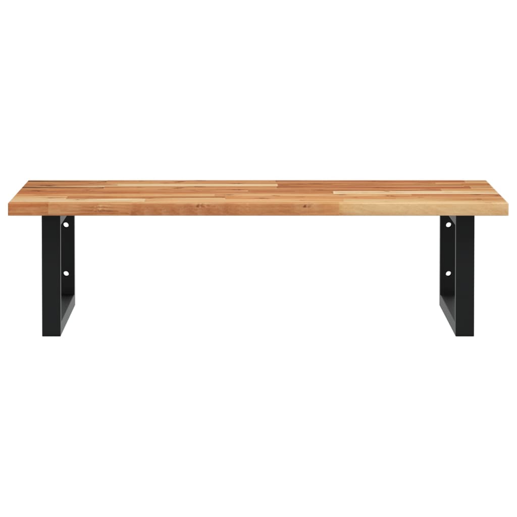 Das Regal lässt sich sicher an der Wand befestigen und bietet eine elegante und platzsparende Lösung für dein Badezimmer. Robust und langlebig: Dieses Waschbeckenregal besteht aus Stahlhalterungen und einer Oberplatte aus massivem Akazienholz, was es robust, stabil und langlebig macht.Platzsparend: Das Schweberegal bietet reichlich Platz für Cremes und verschiedene Kleinigkeiten. Dank der rechteckigen Form der Halterungen kannst du auch Handtücher oder andere Sachen darauf platzsparend aufhängen.Einfache Verwendung: Die Holzplatte ist nicht vorgebohrt, sodass dein Waschbecken je nach Bedarf links, rechts oder in der Mitte angebracht werden kann. Dank der vorgebohrten Löcher in der Halterung lässt sich die Ablage am Waschtisch oder an der Wand mühelos befestigen.Vielseitig einsetzbar: Dank ihres modernen Designs schafft die Ablage zusätzlichen Stauraum und fügt sich harmonisch in die unterschiedlichsten Einrichtungen ein. Gut zu wissen:Die Schrauben sind nicht im Lieferumfang enthalten. Du kannst die Schrauben anhand von den folgenden Informationen separat erwerben.Wandbefestigung: 2 x M8-Dehnschraube pro HalterungHolzplatte: 2 x M5x18-Schraube (T=2) oder 2 x M5x20-Schraube (T=2,5/4 cm) pro Halterung