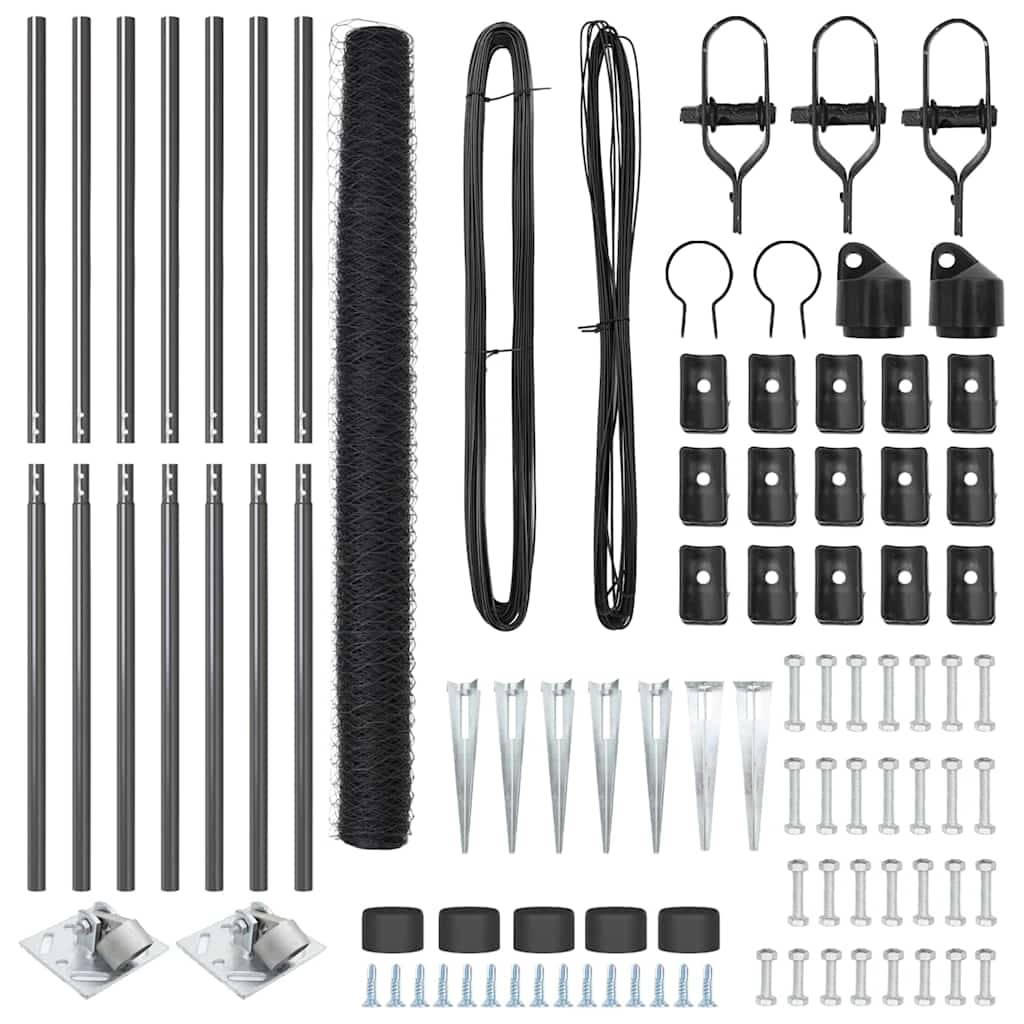 Zaun mit Pfosten Grau 1,5 x 10 m PVC-beschichteter Stahl