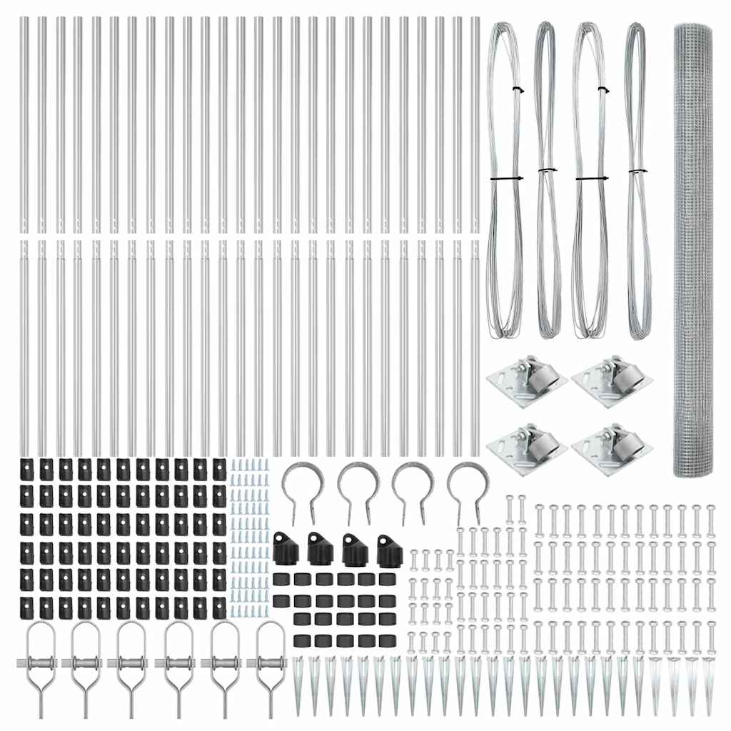 Zaun mit Pfosten Silber 1,6 x 50 m Stahl