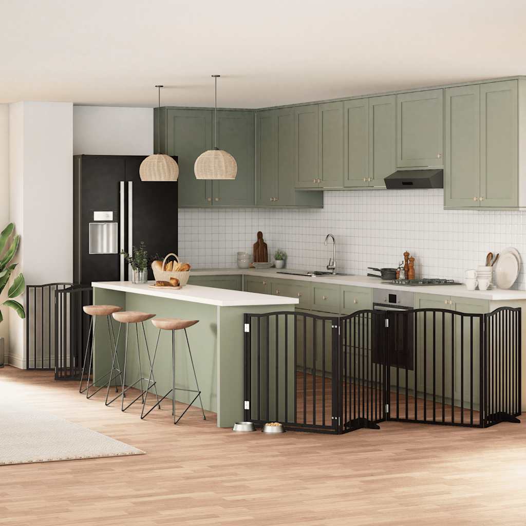 10-tlg. Hundetor mit Tür Faltbar Schwarz 800 cm Pappelholz