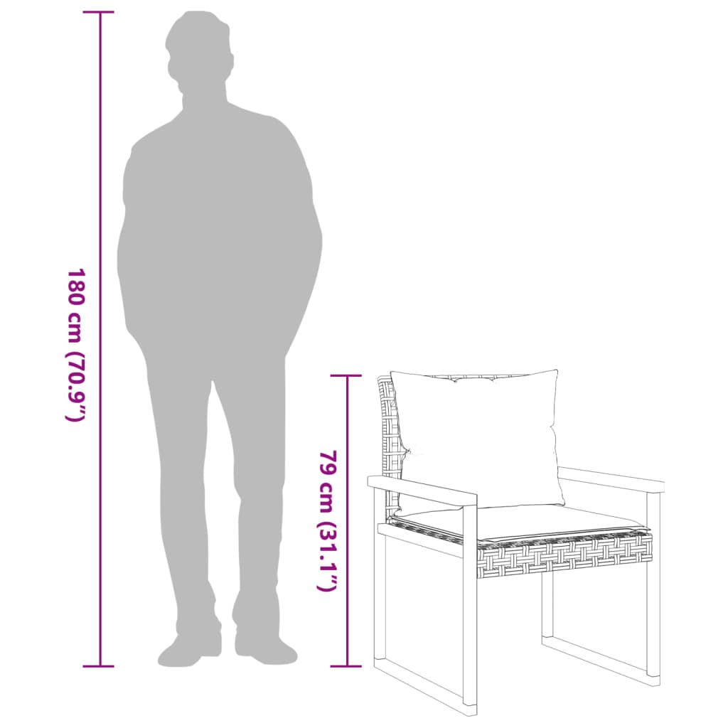 3-tlg. Bistro-Set mit Kissen Schwarz Poly Rattan Akazienholz