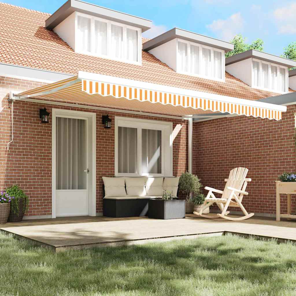 Einziehbare Markise Orange und Weiß 450 × 300 cm Stoff, Metall