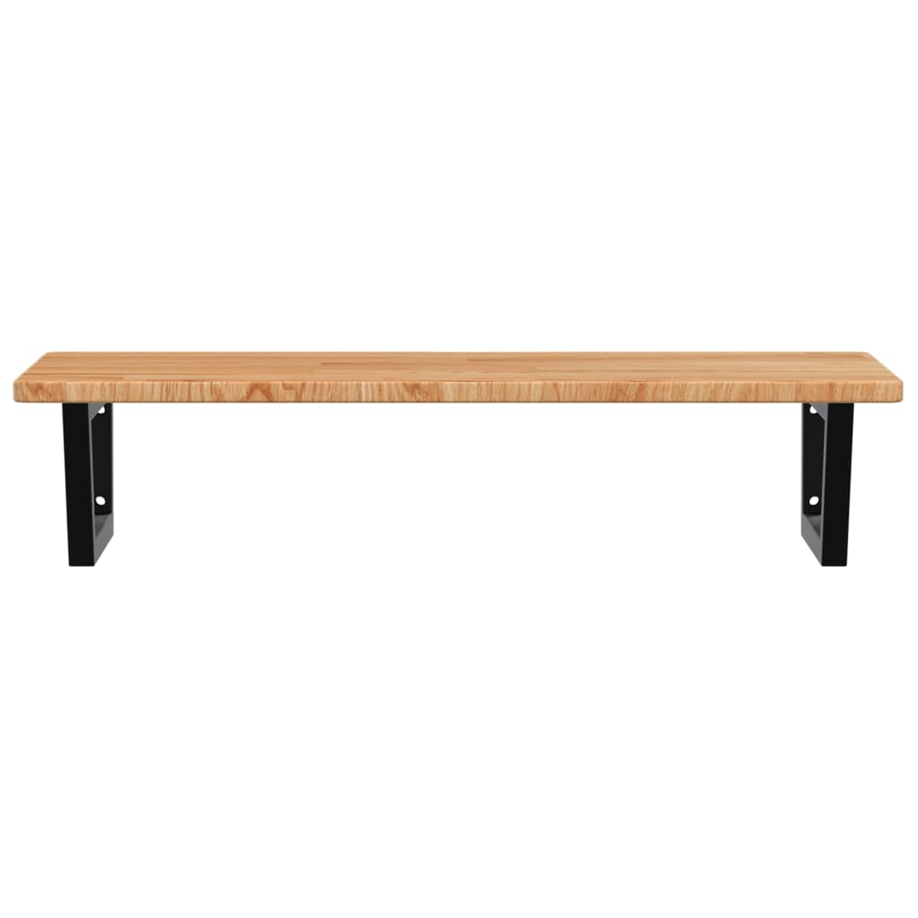 Die Waschtischplatte wird sicher an der Wand befestigt und bietet eine elegante und platzsparende Lösung für dein Badezimmer. Robust und langlebig: Diese Waschtisch-Platte hat Stahlhalterungen und eine Eichenholz-Platte, wodurch sie robust, stabil und langlebig ist. Platzsparend: Die schwebende Waschtischplatte bietet reichlich Platz für das Waschbecken, Seifen, Cremes sowie andere Kleinigkeiten. Dank der Trapezform kannst du Handtücher oder andere Dinge platzsparend an der Halterung aufhängen. Einfache Verwendung: Die Holzplatte ist nicht vorgebohrt, so dass dein Waschbecken je nach Bedarf links, rechts oder mittig installiert werden kann. Dank der vorgebohrten Löcher in der Halterung kann diese einfach mit der Tischplatte montiert und an der Wand befestigt werden. Vielseitige Anwendungsmöglichkeiten: Dank ihres modernen Designs fügt sie sich in verschiedene Arten von Bädern ein. Gut zu wissen:Die Schrauben sind nicht im Lieferumfang enthalten. Du kannst die Schrauben auf der Grundlage der unten aufgeführten Informationen separat erwerben. Wandbefestigung: 2 Stück M8-Dehnschrauben pro Halterung Holzplatte: 2 Stück M5x18-Schrauben (T=2) oder 2 Stück M5x20-Schrauben (T=2,5/4 cm) pro Halterung