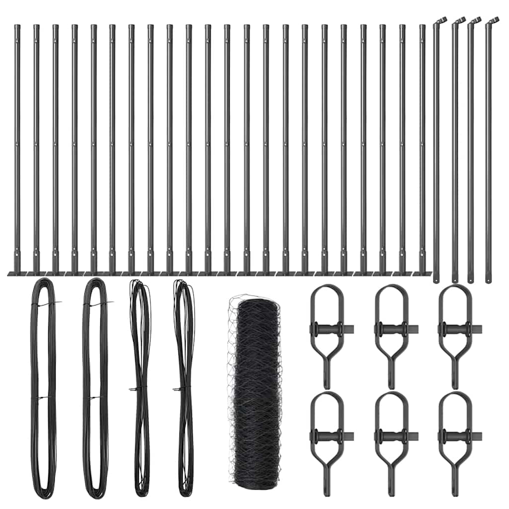 Zaun mit Pfosten Grau 1 x 50 m PVC-beschichteter Stahl