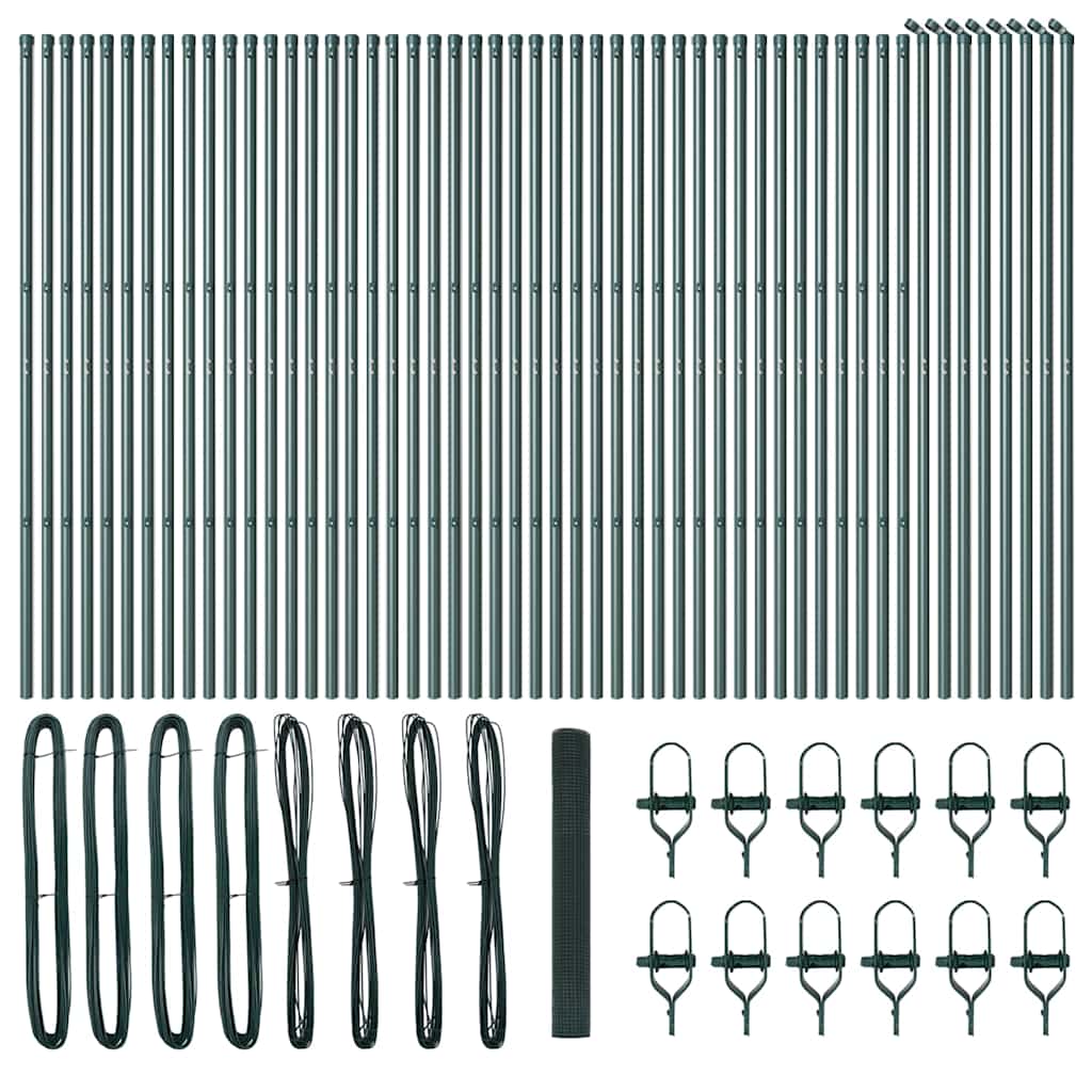 Zaun mit Pfosten Grün 1 x 100 m Stahl