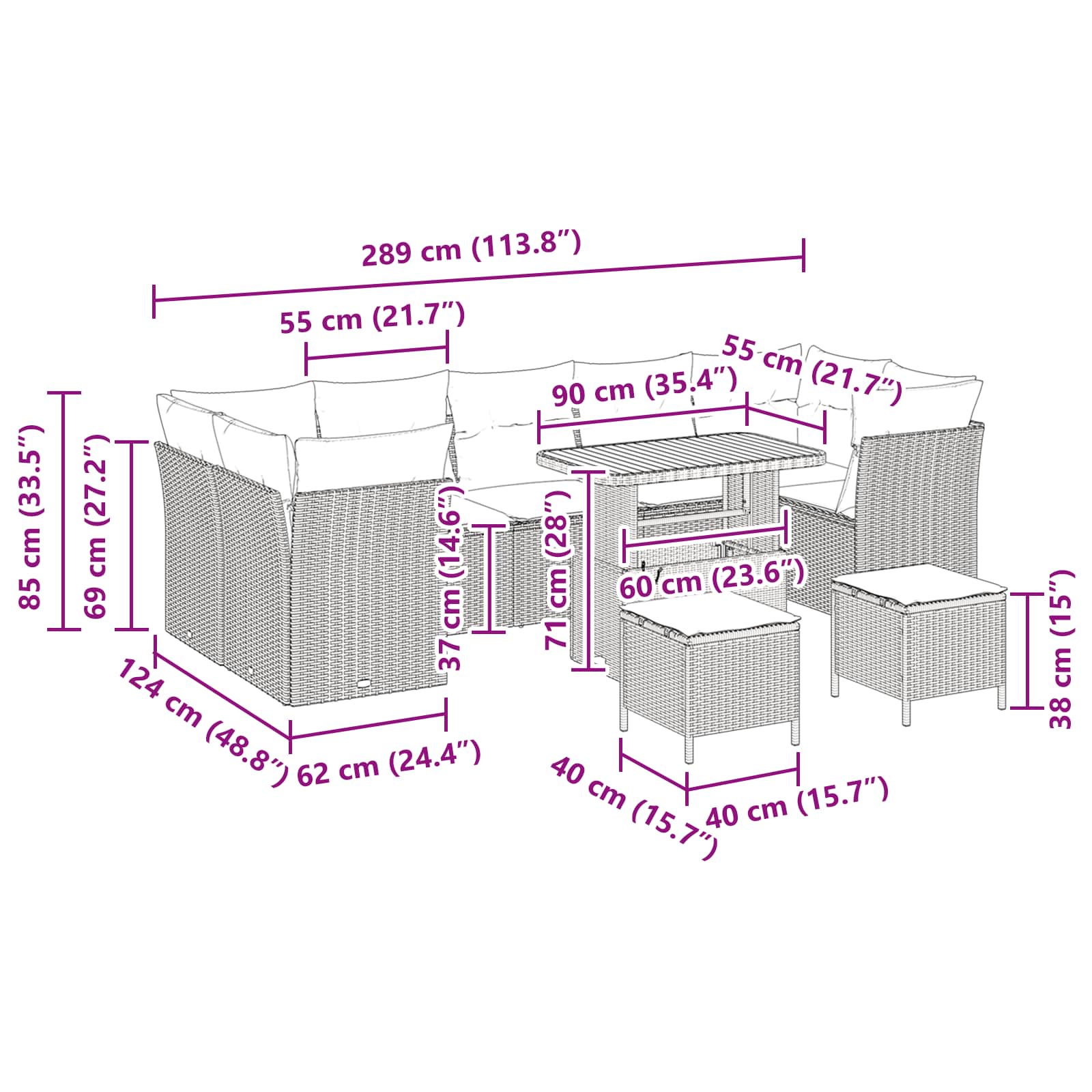 Garten-Sofa-Set 10 pcs Schwarz Poly-Rattan