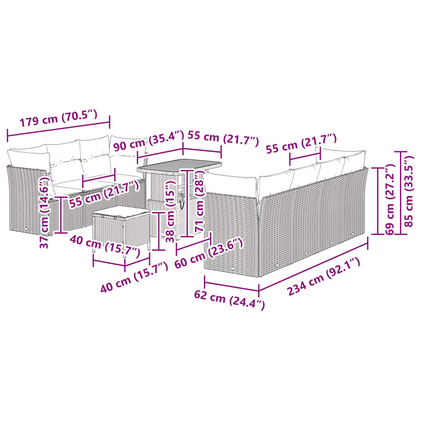 Gartensofa-set mit Kissen 10 pcs Schwarz Poly-Rattan