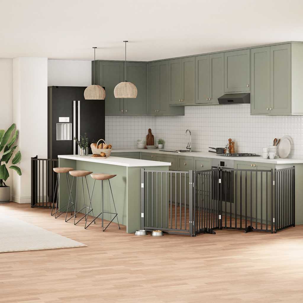 10-tlg. Hundetor mit Tür Faltbar Schwarz 800 cm Pappelholz