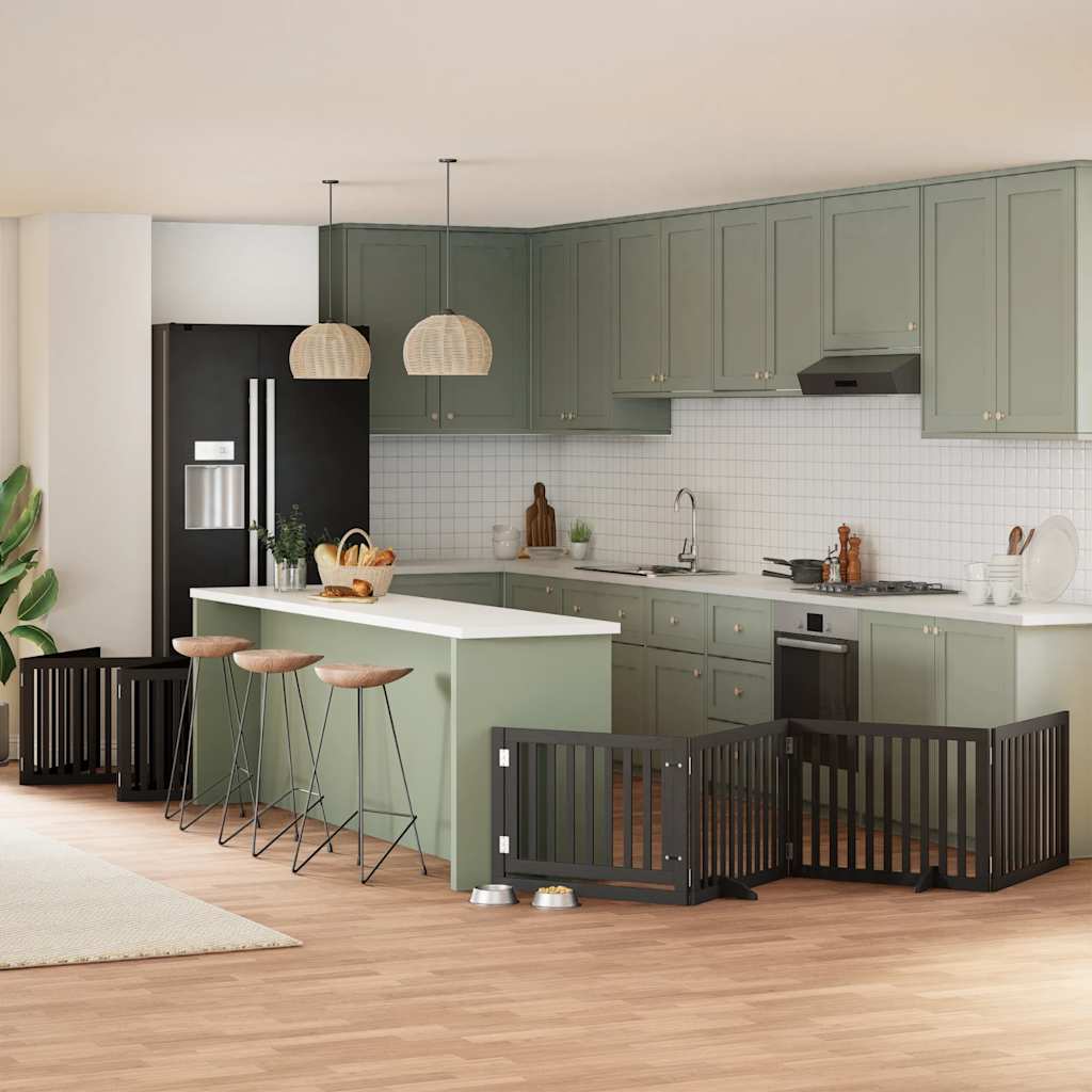 10-tlg. Hundetor mit Tür Faltbar Schwarz 800 cm Pappelholz