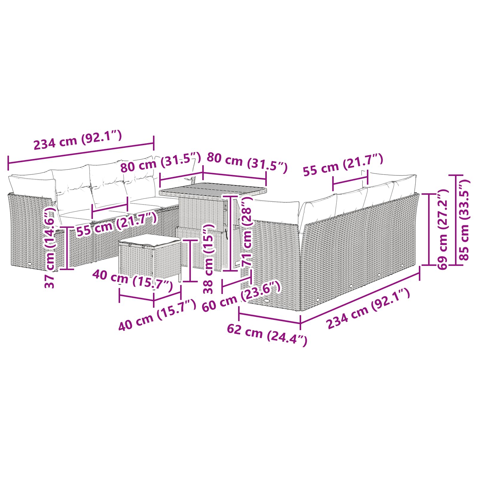 Garten-Sofa-Set 11 pcs Schwarz Poly-Rattan