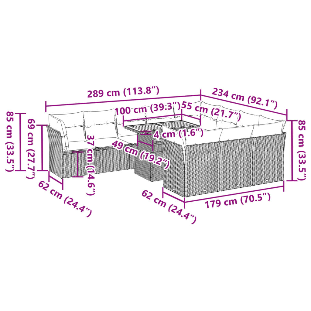 Diese Garten-Sofagarnitur ist die perfekte Ergänzung zu deinem Garten, deiner Terrasse oder deinem Innenhof. Sie bietet einen bequemen und einladenden Platz, um mit Familie und Freunden zu plaudern oder dich einfach nur zu entspannen und das Leben im Freien zu genießen. Langlebiges Material: PE-Rattan, auch als Poly Rattan bekannt, ist ein robustes, pflegeleichtes synthetisches Material, das die Optik von natürlichem Rattan aufweist. Es kennzeichnet sich durch ein geringes Eigengewicht und lässt sich einfach reinigen. Aufgrund seiner Haltbarkeit und Witterungsbeständigkeit wird es häufig bei der Herstellung von Gartenmöbeln verwendet.Stauraum mit wasserfestem Beutel: Das Gartensofa verfügen über ein Staufach unter der Sitzfläche, das mit einem wasserfesten Beutel zur Aufbewahrung von Kissen, Spielzeug und anderen Gegenständen versehen ist. Der Innenbeutel lässt sich mit Klettverschlüssen sicher und stabil an den Gartenmöbeln befestigen.Verstellbare Tischplatte: Die Tischplatte lässt sich anheben, um den Gartentisch höher zu machen und ihn von einem Couchtisch in einen Esstisch zu verwandeln. Er eignet sich daher perfekt für Gäste oder Mahlzeiten im Freien.Abnehmbarer und waschbarer Bezug: Diese Sitzkissen verfügen über abnehmbare Bezüge für einfaches Waschen und Pflegen.Modulares Design: Dank des modularen Designs lassen sich die Gartenmöbel völlig flexibel und einfach umstellen, um deinen Außenbereich ganz individuell zu gestalten. Gut zu wissen:Wir empfehlen dir, deine Gartenmöbel mit einer wasserdichten Hülle zu schützen, um lange Zeit eine ansprechende Optik aufzuweisen.