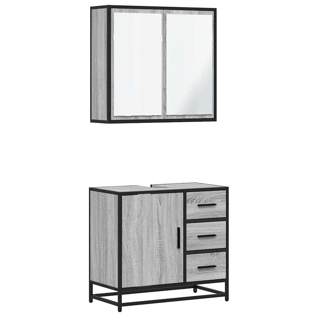 2-tlg. Badmöbel-Set Grau Sonoma Holzwerkstoff
