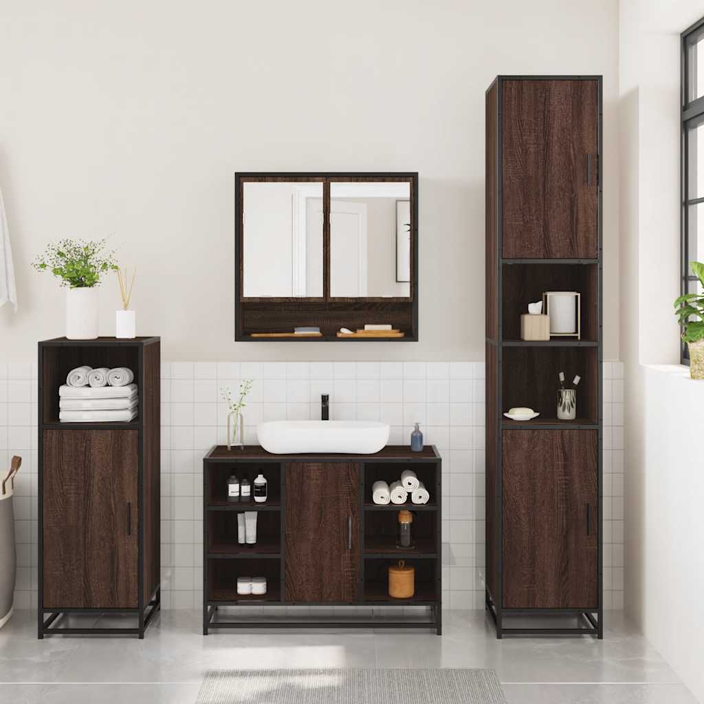 3-tlg. Badmöbel-Set Braun Eichen-Optik Holzwerkstoff