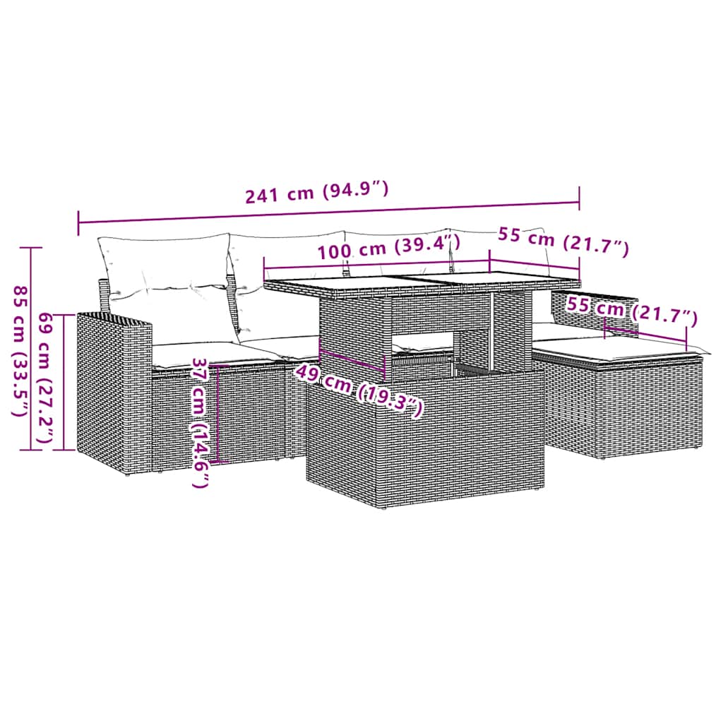 6-tlg. Garten-Sofagarnitur mit Kissen Schwarz Poly Rattan