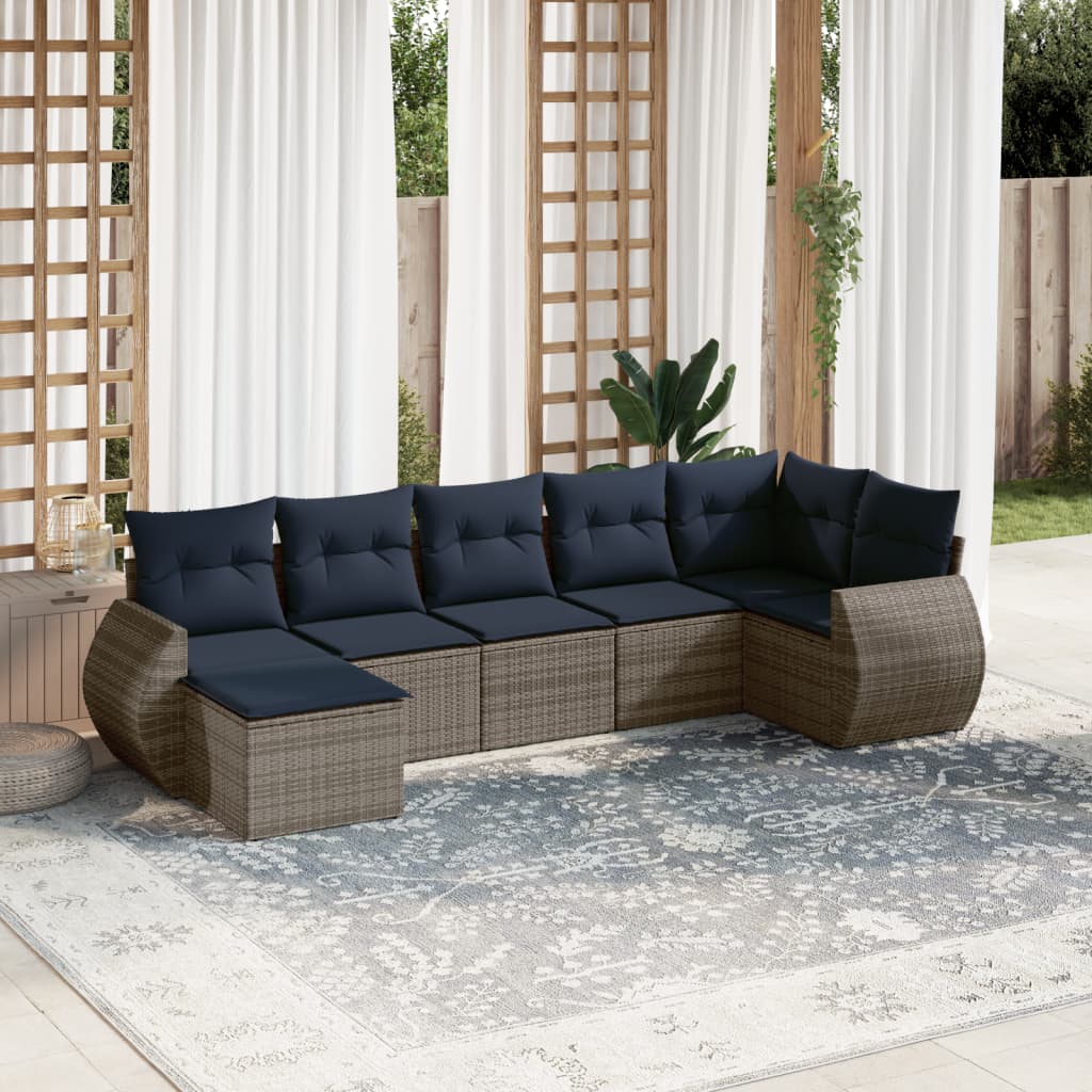 7-teiliges Gartensofa-Set mit Kissen, grau, Polyrattan