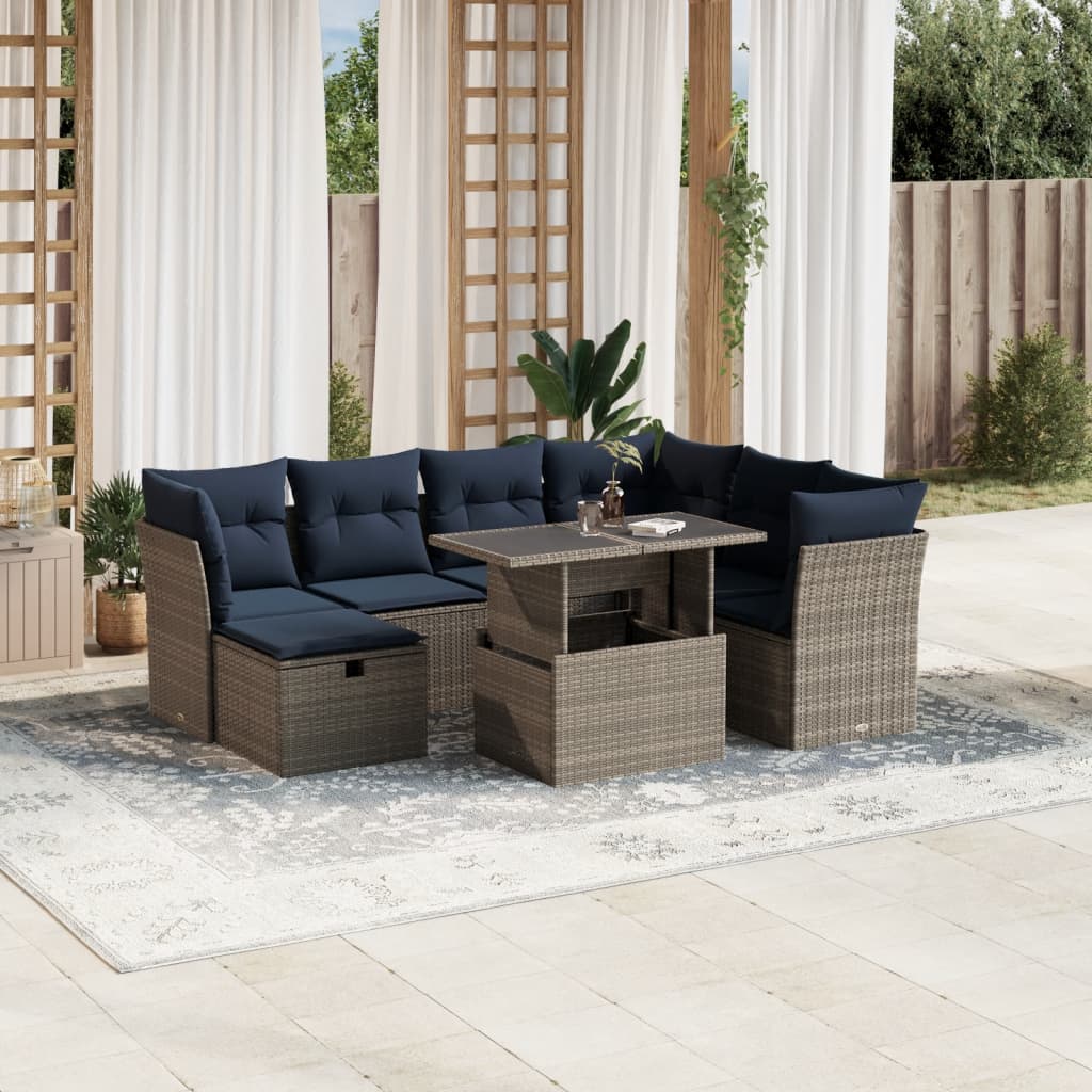 8-teiliges Gartensofa-Set mit Kissen, grau, Polyrattan