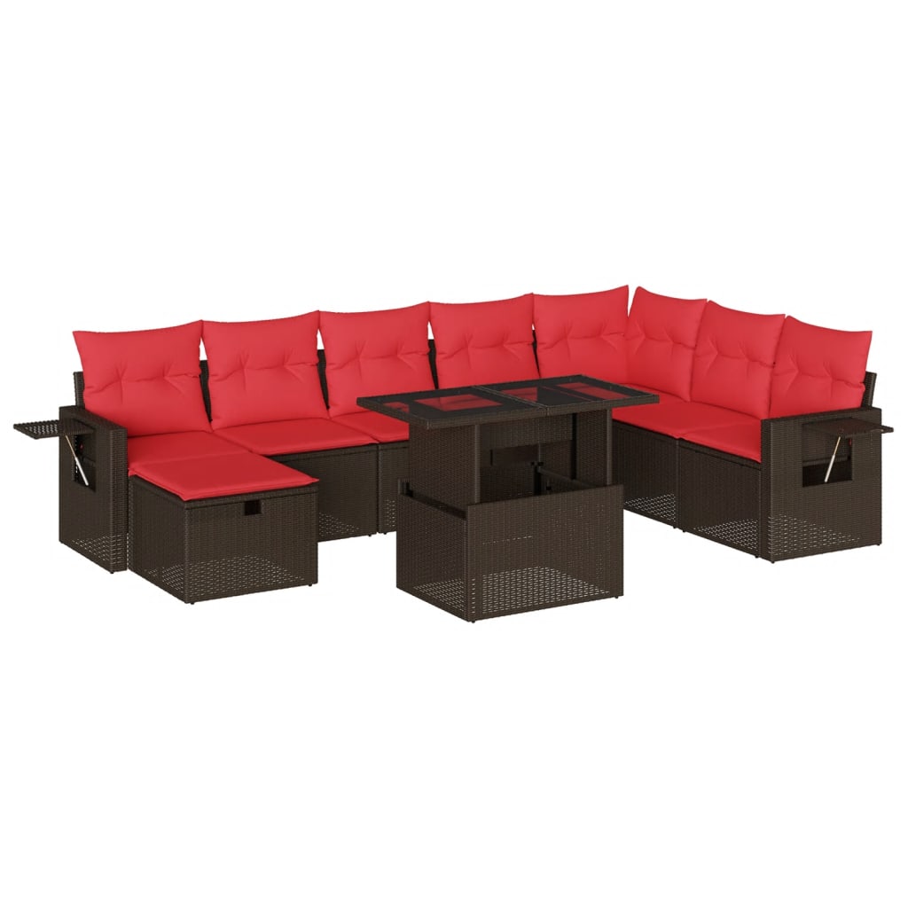 Dieses Gartensofa-Set ist die perfekte Ergänzung für Ihren Garten, Ihre Terrasse oder Ihren Innenhof und bietet einen komfortablen und einladenden Platz zum Plaudern mit Familie und Freunden oder einfach zum Entspannen und Genießen der Natur. Langlebiges Material: PE-Rattan, auch bekannt als Polyrattan, ist ein robustes, pflegeleichtes Kunststoffmaterial, das wie natürliches Rattan aussieht. Es ist leicht, einfach zu reinigen und wird aufgrund seiner Langlebigkeit und Wetterbeständigkeit häufig für Gartenmöbel verwendet.Verstellbare Tischplatte: Die Tischplatte kann angehoben werden, um den Tisch höher zu machen, wodurch der Gartentisch von einem Couchtisch in einen Esstisch verwandelt wird. Es ist perfekt, um Gäste zu empfangen oder draußen zu essen.Abnehmbarer und waschbarer Bezug: Diese Sitzkissen verfügen über abnehmbare Bezüge zum einfachen Waschen und Pflegen.Modulares Design: Dieses Gartenmöbelset hat ein modulares Design, wodurch es völlig flexibel und leicht zu bewegen ist, sodass Sie eine individuelle Gartenmöbelanordnung erstellen können. Gut zu wissen:Damit Ihre Gartenmöbel schön bleiben, empfehlen wir Ihnen, sie mit einer wasserdichten Abdeckung zu schützen.