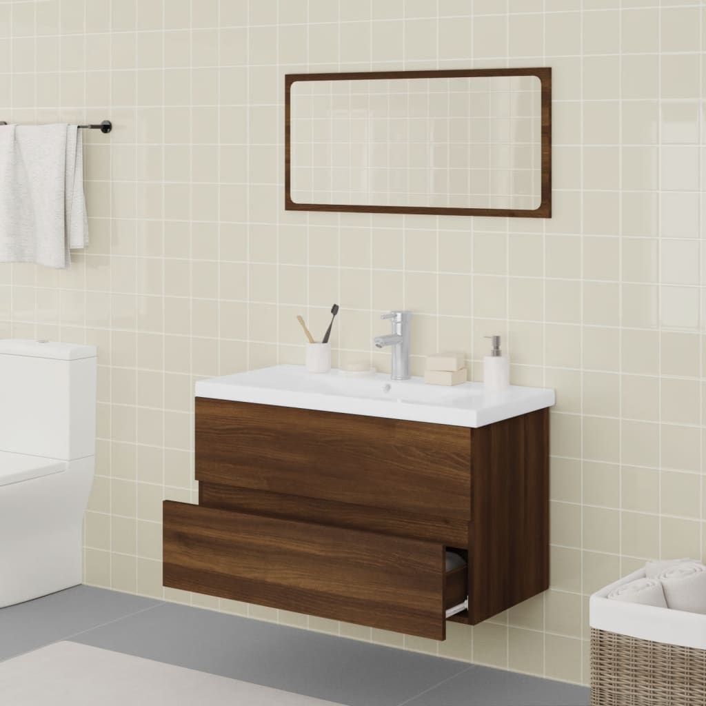 Dieses stilvolle Badmöbel-Set mit viel Stauraum ist eine ausgezeichnete Ergänzung für Ihr Badezimmer, denn es verleiht ihm ein aufgeräumtes und auffälliges Erscheinungsbild! Robustes Material: Der Unterschrank besteht aus Holzwerkstoff, einem Material von außergewöhnlicher Qualität mit glatter Oberfläche, das sich durch Festigkeit, Stabilität und Feuchtigkeitsbeständigkeit auszeichnet.Viel Stauraum: Der Waschbeckenunterschrank verfügt über eine Schublade und bietet dadurch viel Stauraum für die Aufbewahrung verschiedener Sachen in deinem Badezimmer.Praktisches Design: Auf der Oberseite dieses Badschranks findet dein Waschbecken den idealen Platz.Wandmontage: Der Badezimmerschrank und der Schminkspiegel lassen sich an der Wand montieren, um zusätzlichen Stauraum zu schaffen. Auf diese Weise kannst du deine Bodenfläche maximieren und leichter für Ordnung sorgen.Überlauffunktion: Ein Überlauf sorgt dafür, dass das Wasser abfließt, wenn das Waschbecken zu voll wird. Hinweis:Schrauben und Dübel für die Wandbefestigung sind nicht enthalten. Suchen und verwenden Sie die für Ihre Wände geeigneten Schrauben und Dübel. Wenn Sie unsicher sind, suchen Sie professionelle Hilfe. Lesen und befolgen Sie jeden Schritt der Anleitung sorgfältig.Wasserhahn und Ablauf mit Überlauffunktion sind im Lieferumfang enthalten.Jedes Produkt wird mit einer Montageanleitung in der Verpackung für eine einfache Montage geliefert.