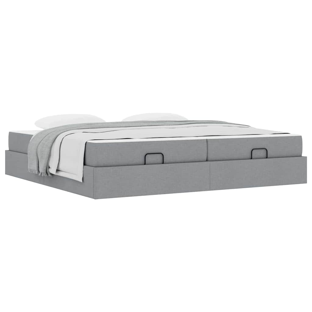 Bettgestell mit Speicher Hellgrau 200 x 200 cm Stoff