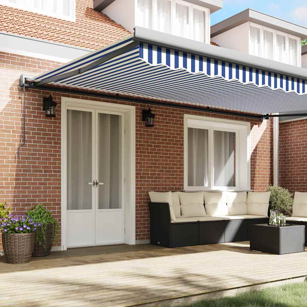 Einziehbare Markise Blau und weiß 500 × 300 cm Stoff, Metall