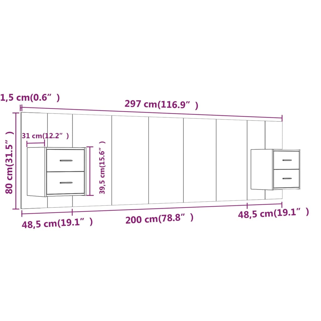 Kopfteil mit Nachttischen Weiß Holzwerkstoff