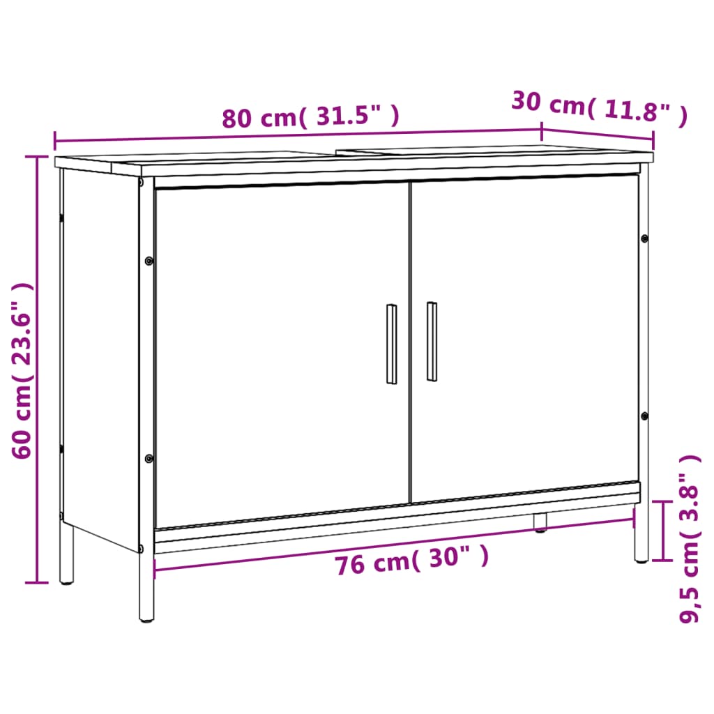 Waschbeckenunterschrank Braun Eiche 80x30x60 cm Holzwerkstoff
