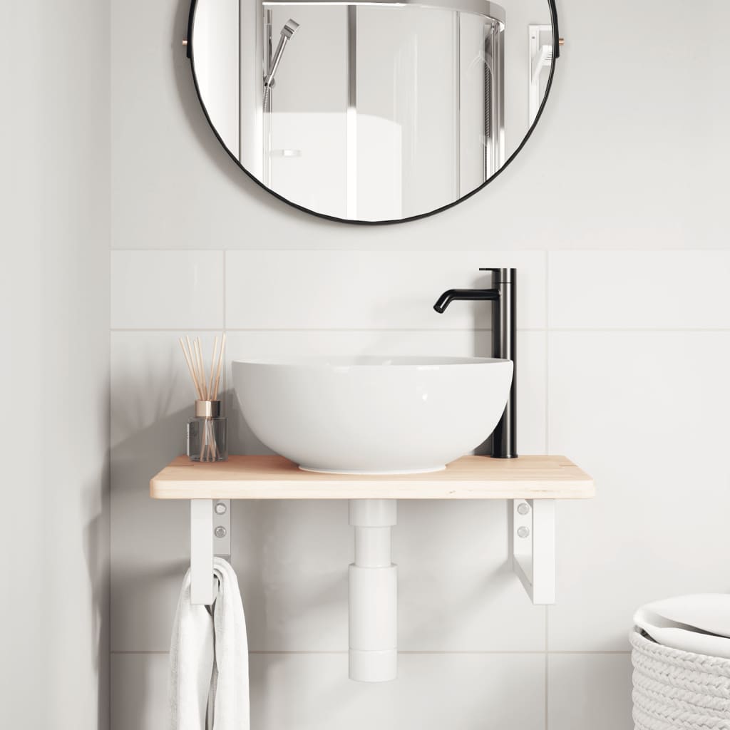 Waschtischplatte mit Halterung Stahl und Massivholz Eiche